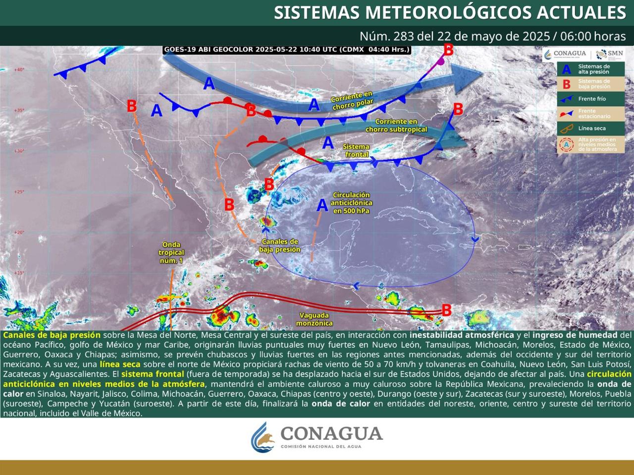 Oaxaca de Juárez, Oax. 22 de mayo de 2025.- La Coordinación Estatal de Protección Civil y Gestión de Riesgos (CEPCyGR) informa que, este jueves, el tiempo estará marcado por el término de la ola de calor debido al debilitamiento del anticiclón y a la presencia de mayor nubosidad desde primeras horas del día.