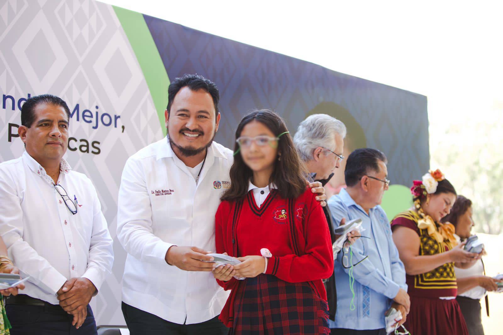 Cumpliendo uno de los ejes transversales en la administración del Gobernador Salomón Jara Cruz, enfocado a garantizar el Interés Superior de Niñas, Niños y Adolescentes, con la representación del Mandatario e estatal, el director general del Instituto Estatal de Educación Pública de Oaxaca (IEEPO), Emilio Montero Pérez acompañado del director general de la Fundación Ver Bien A.C., José Antonio Dorbecker Castillo, realizó la entrega de los apoyos.