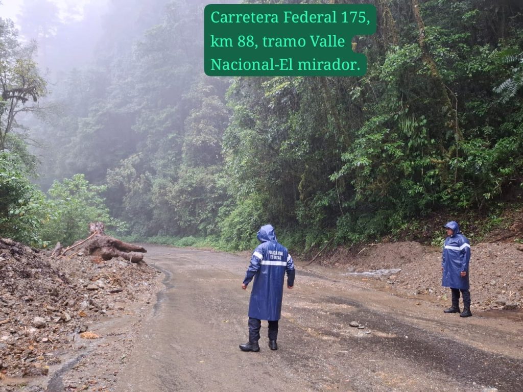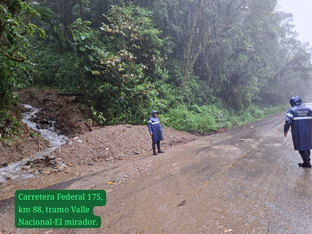 Dichos puntos se encuentran en el tramo Oaxaca – Valle Nacional, a la altura del kilómetro 50+800 y en el kilómetro 55; autoridades de San Mateo Yetla y 10 habitantes trabajan para quitar los obstáculos.