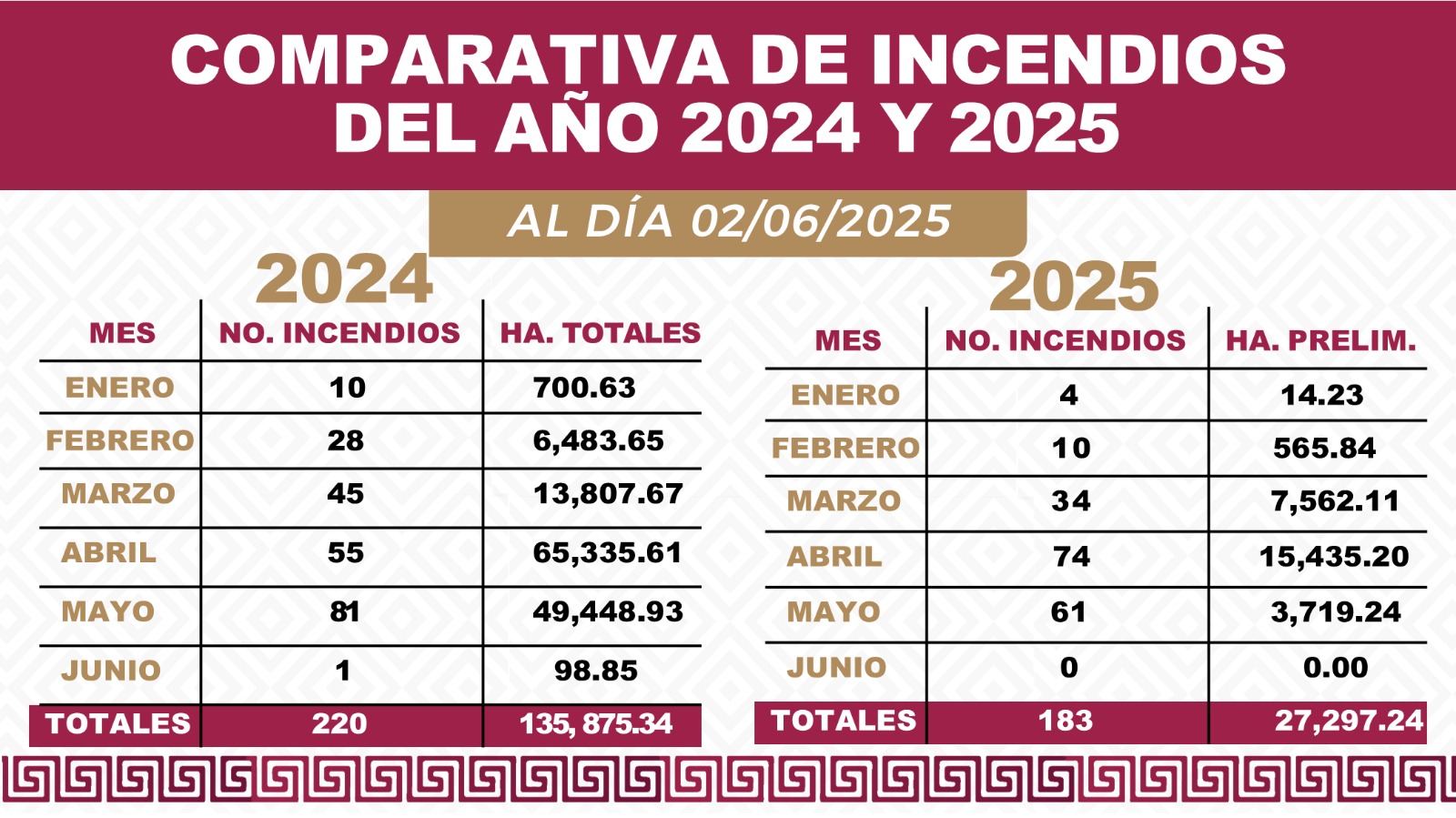 Durante la conferencia matutina encabezada por el Gobernador Salomón Jara Cruz, la funcionaria estatal señaló que, de manera preliminar, han sido afectadas 27 mil 297 hectáreas en lo que va de del año 2025, lo que representa una reducción en comparación con las 135 mil 875 hectáreas y 220 incidentes registrados durante el mismo periodo en 2024.