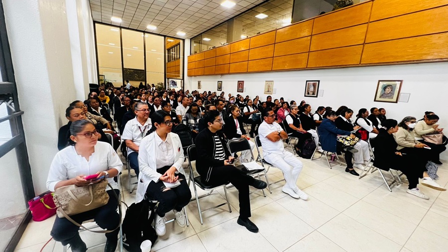 Oaxaca de Juárez, Oax. 4 de octubre de 2024.- Con el fin de coordinar acciones que permitan proteger a la población, Servicios de Salud de Oaxaca (SSO) a través de la Jurisdicción Sanitaria 1 Valles Centrales, llevaron a cabo una jornada académica sobre lineamientos de la temporada invernal 2024-2025. Dirigida a 200 profesionales de medicina y enfermería de esta demarcación, la jefa jurisdiccional Aurelia Guerra Martínez, expuso que esta actividad tiene como objetivo actualizar y fortalecer los conocimientos de las y los participantes, en el impacto de enfermedades respiratorias como la influenza y COVID-19, principalmente.