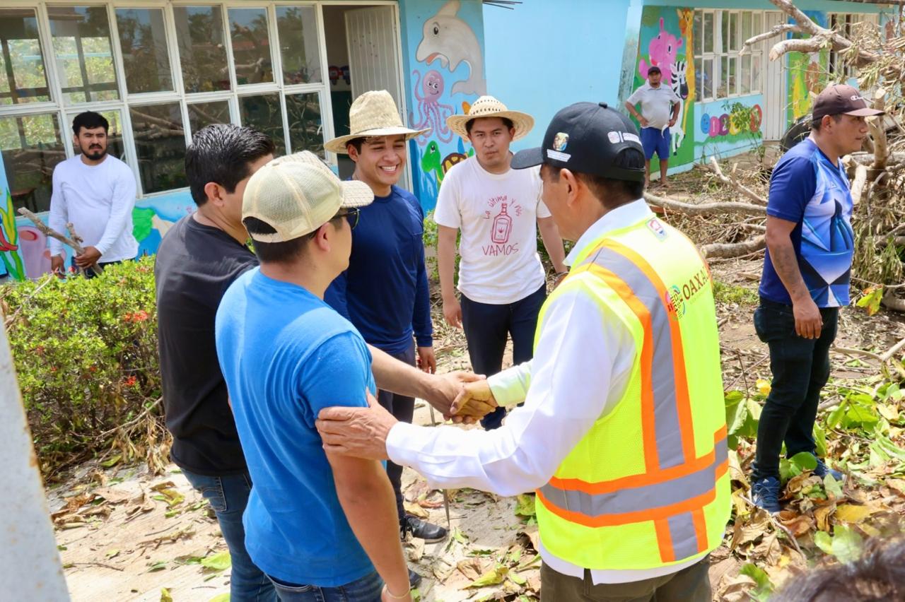 Jara Cruz afirmó que ante la adversidad y los daños ocasionados por el fenómeno meteorológico “la fuerza del Gobierno del Estado se hace presente en las comunidades más afectadas por Erick”.