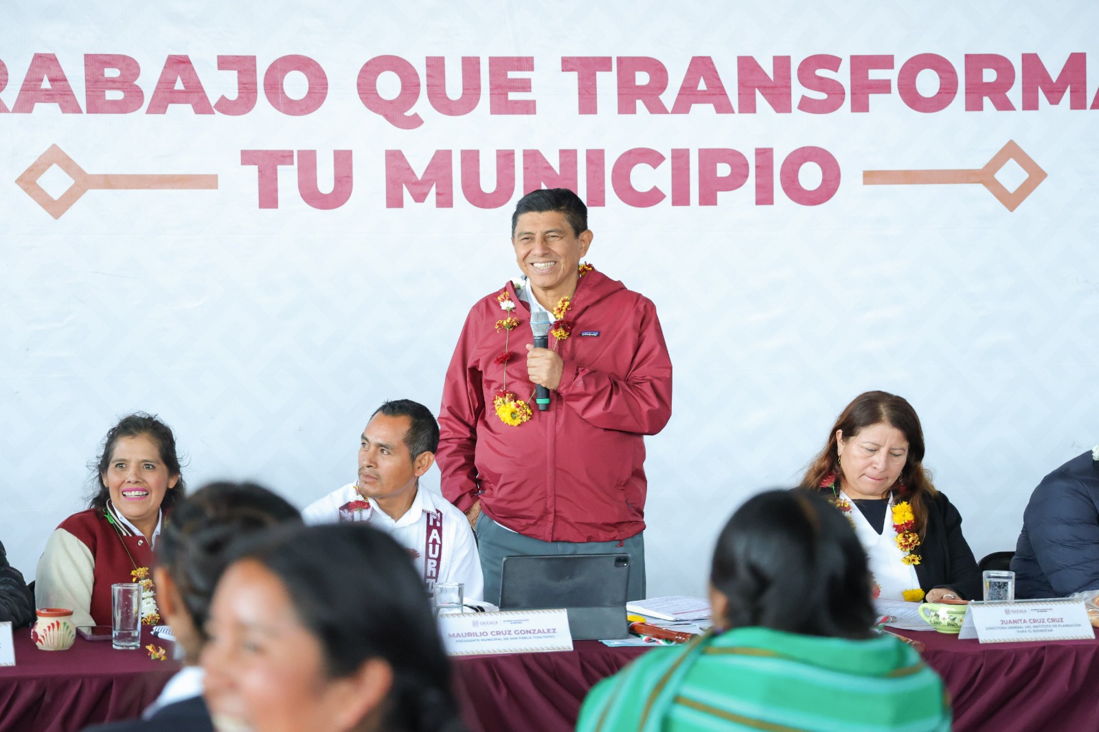 De esta manera, el Gobernador Salomón Jara Cruz anunció la inversión de 15 millones 372 mil pesos en beneficio de habitantes de San Pablo Tijaltepec, los cuales serán distribuidos mediante diversos programas de la administración estatal.