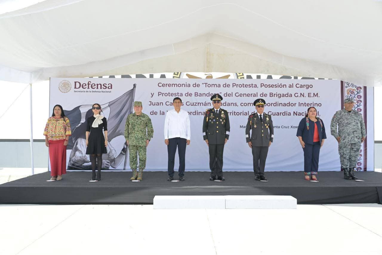 Santa Cruz Xoxocotlán, Oax. 17 de marzo de 2026.- El Gobernador Salomón Jara Cruz atestiguó la toma de protesta del General de Brigada G.N. E.M. Juan Carlos Guzmán Giadans quien asumió el cargo de Coordinador Interino de la VIII Coordinación Territorial de la Guardia Nacional.