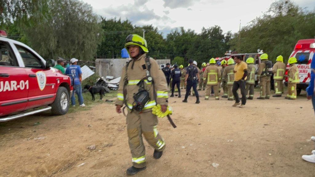 El Heroico Cuerpo de Bomberos de Oaxaca (HCBO) brindó atención durante la explosión registrada en una cohetería ubicada en la calle Benito Juárez en el municipio de Santa María del Tule, la cual ya fue sofocada.