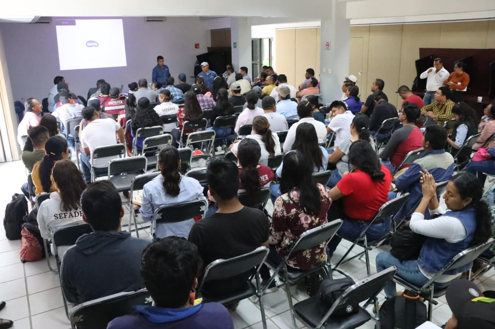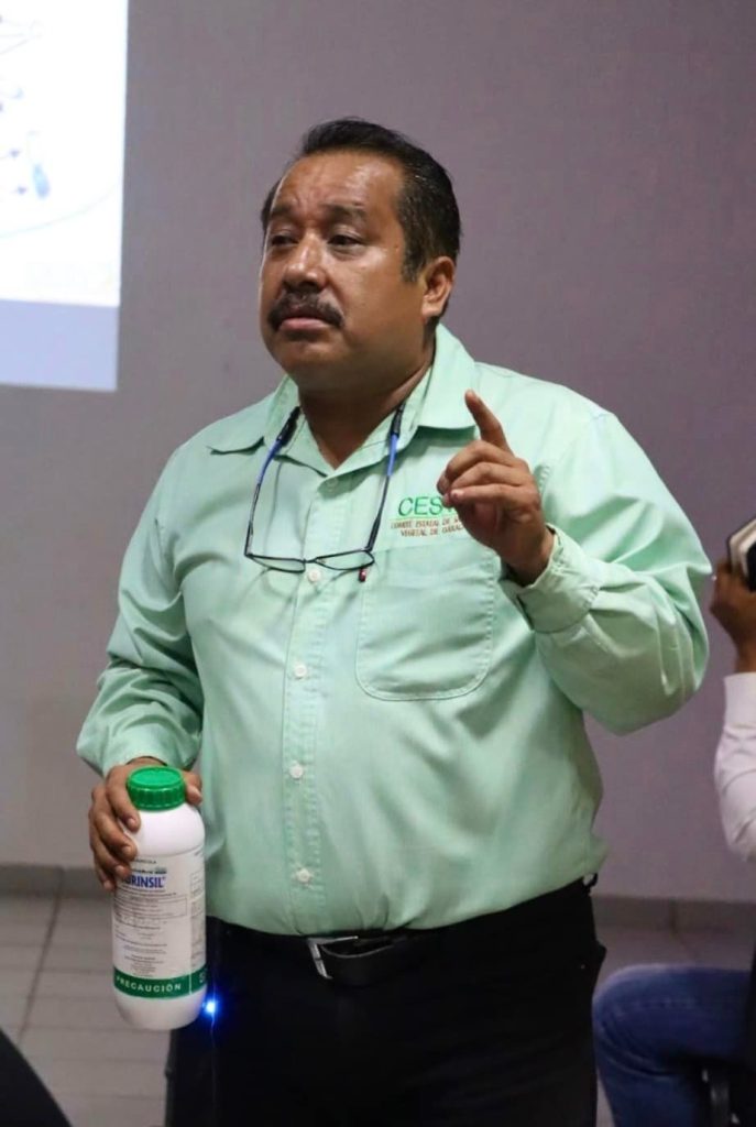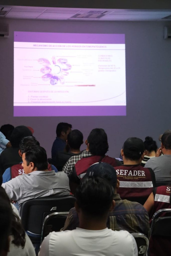 Oaxaca de Juárez, Oax 30 de agosto de 2024.- La Secretaría de Fomento Agroalimentario y Desarrollo Rural (Sefader), y el Comité Estatal De Sanidad Vegetal de Oaxaca (CESVO) capacitaron al personal técnico en “Control de Plagas”, para combatir la presencia del gusano falso medidor en los cultivos de Oaxaca.Esta acción que involucra personal de los programas Abasto Seguro de Maíz y Autosuficiencia Alimentaria, se despliega derivado de la presencia de este insecto en los sembradíos de personas productoras en las diferentes regiones.