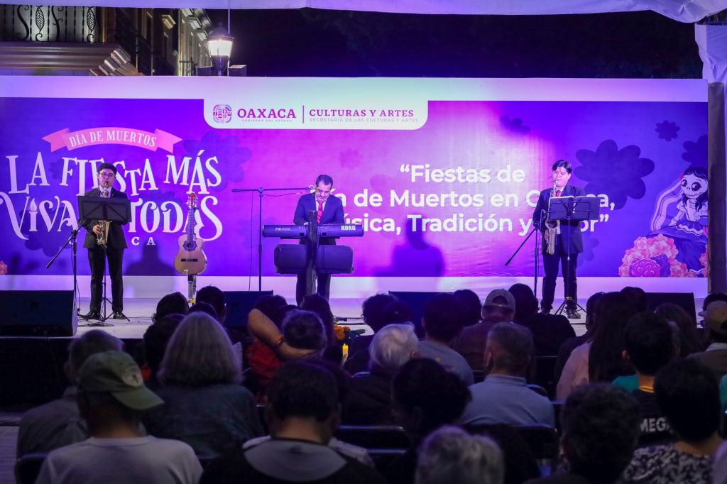Para culminar la jornada de actividades culturales y artísticas, en el corazón de la ciudad de Oaxaca, resonaron los sones y chilenas de la Sierra Sur, a través de las interpretaciones de la Orquesta Típica de Juquila, cuyos integrantes preservan las tradiciones de su comunidad, a través de la música.
