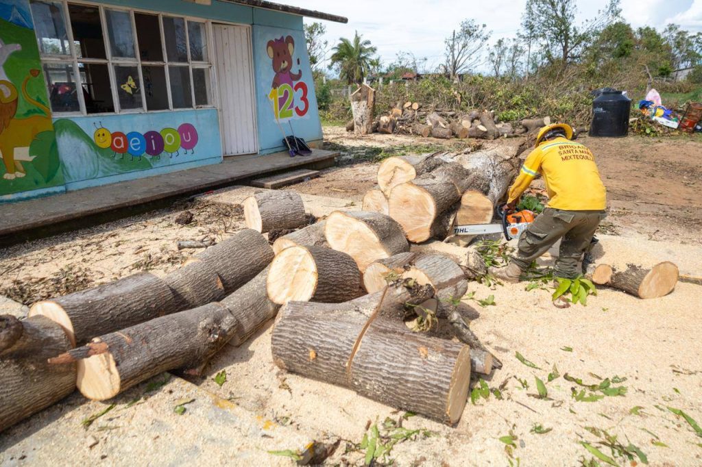 En estos sitios se llevaron a cabo acciones retirando árboles caídos que obstruían accesos o dañaron estructuras en: 115 viviendas, 24 jardines de niños; 34 escuelas primarias; 24 secundarias y telesecundarias, y 9 bachilleratos; permitiendo la recuperación de espacios educativos y el regreso seguro a clases.