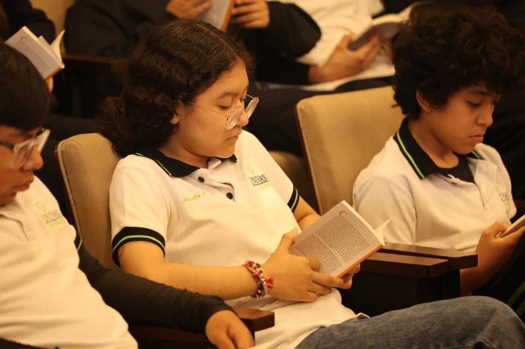 En esta ocasión, siete alumnas y alumnos de la secundaria Univas, entre ellos: Abril Hernández Luis, Zadquiel Rodríguez Hernández e Iker Isaí Pérez Domínguez; participaron en esta lectura colectiva de los cuentos La muerte tiene permiso, Estuvo en la guerra y No como al soñar.