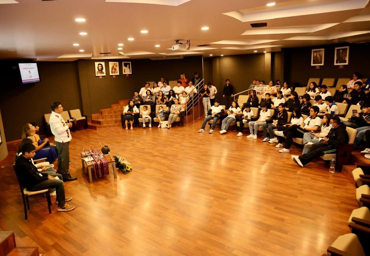 Reunidos con el Gobernador Salomón Jara Cruz, en el salón Libertadores de América, en Palacio de Gobierno; las y los jóvenes conocieron la obra “La muerte tiene permiso”, que fue publicada en 1955, compuesta por 22 cuentos, de los cuales, leyeron tres en voz alta.