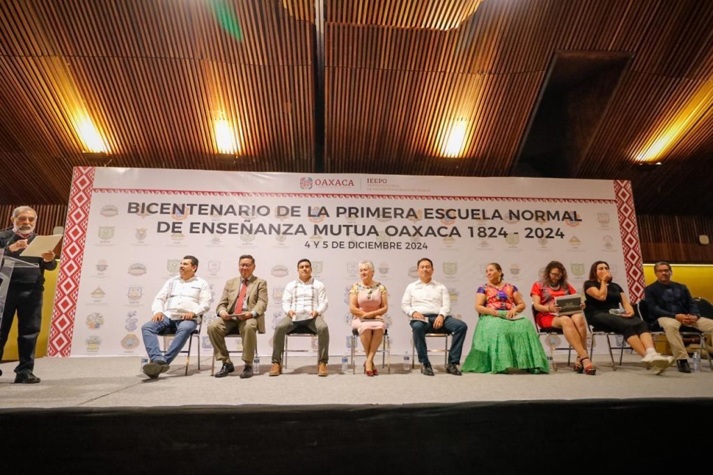 Oaxaca de Juárez, Oax., 4 de diciembre de 2024.- Con un evento cívico, social, cultural y académico que reúne a las 11 instituciones formadoras de docentes de la entidad y a escuelas normales de Zacatecas, Ciudad de México, Michoacán y Chiapas, el Gobierno del Estado conmemora el Bicentenario de la Primera Normal de Enseñanza Mutua en Oaxaca, establecida en 1824.