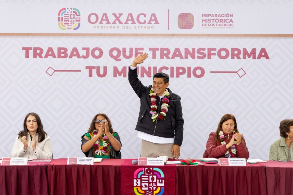 San Nicolás, Oax. 3 de octubre de 2024.- En la Sierra Sur y ante la pertinaz llovizna, el Gobernador Salomón Jara Cruz visitó San Nicolás en donde anunció recursos y acciones por 11 millones 500 mil pesos como parte de la estrategia Trabajo que Transforma tu Municipio para brindar una mejor atención en materia de salud, educación, alimentación, infraestructura carretera y programas sociales que apuesta al desarrollo de las comunidades oaxaqueñas.