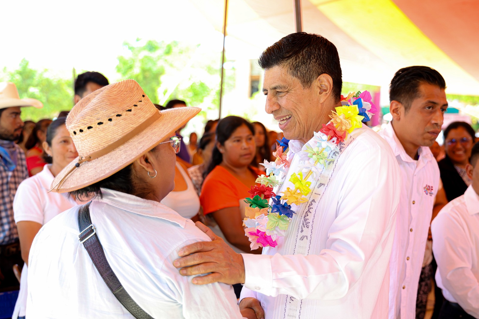 En su oportunidad, el Mandatario Estatal acompañado de la Presidenta Honoraria del Sistema Estatal para el Desarrollo Integral de la Familia (DIF) Oaxaca, Irma Bolaños Quijano, externó que su gobierno trabaja de la mano con el pueblo y sus autoridades para avanzar hacia una verdadera transformación. “Estamos recorriendo los 570 municipios para atender las necesidades, porque es ahí donde se encuentran las carencias”.