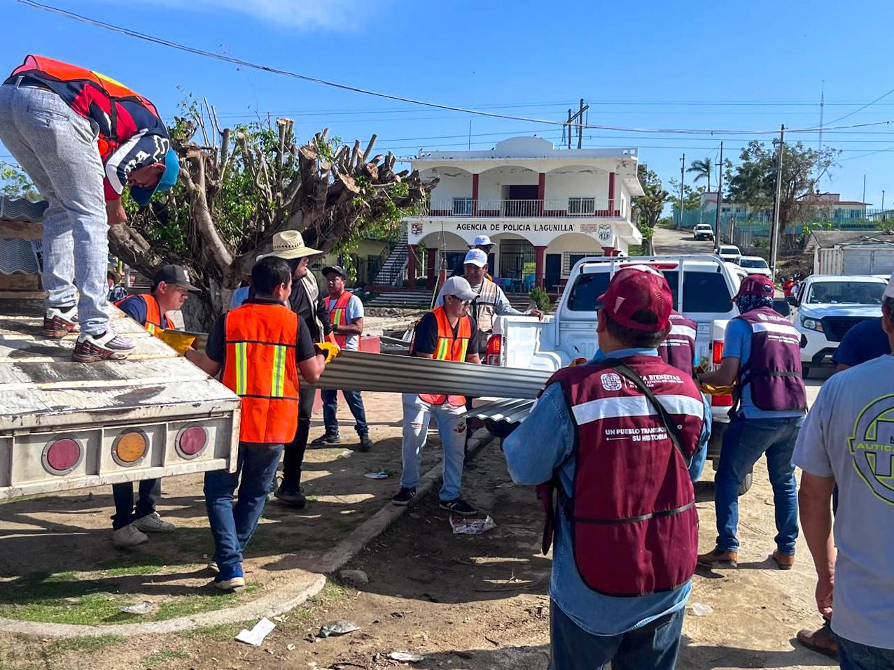 En esta ocasión, las brigadas de la dependencia se desplegaron en la localidad de Lagunillas, perteneciente al municipio de Santiago Pinotepa Nacional, donde entregaron láminas a las familias que sufrieron daños en sus viviendas por este meteoro.