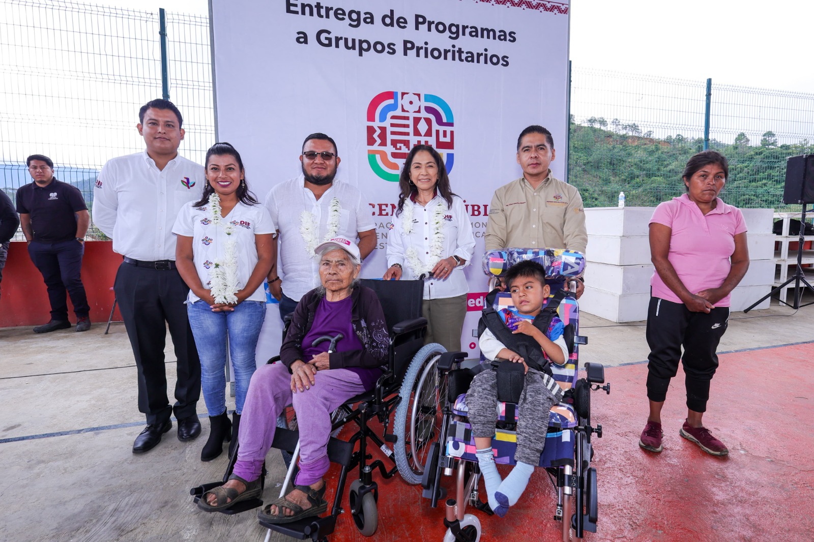 San Pablo Coatlán, Oax., 12 de septiembre de 2024.- En una acción directa y sin intermediarios, la Presidenta Honoraria del Sistema para el Desarrollo Integral de la Familia (DIF) Oaxaca, Irma Bolaños Quijano entregó en diversos municipios de la Sierra Sur apoyos de los Programas a Grupos Prioritarios, entre los que destacan las dotaciones del programa alimentario Itacate de mi Corazón a 7 mil 142 personas beneficiarias, así como 93 aparatos funcionales.