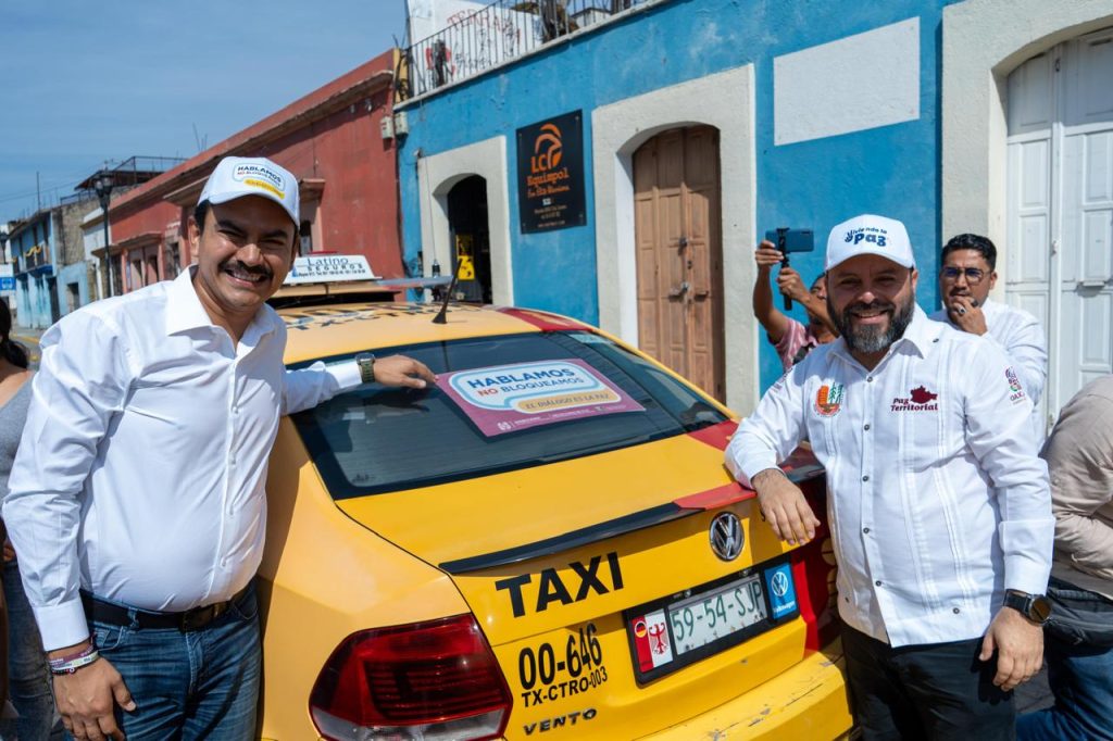 En este marco, el edil del capital acompañado del Secretario de Gobierno, regidoras, regidores y funcionariado realizaron la pega de calcas alusivas a la campaña “Hablamos no bloquemos” a unidades de servicio de taxi de la capital oaxaqueña.