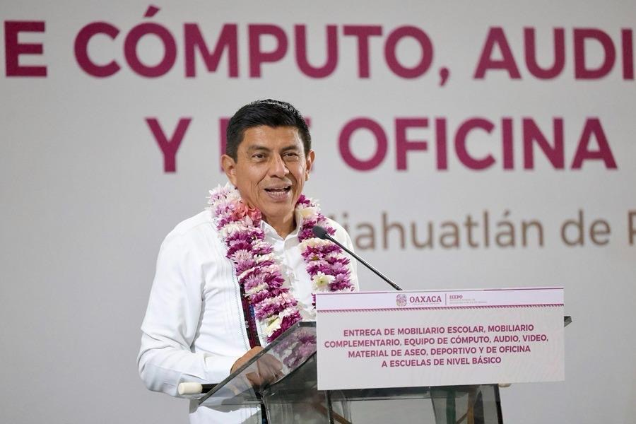 Miahuatlán de Porfirio, Oax. 31 de enero de 2025.- Más de 4 mil estudiantes de 45 instituciones educativas de nivel básico de la Sierra Sur fueron beneficiados con la entrega de mobiliario escolar y equipo de cómputo que el Gobernador Salomón Jara Cruz encabezó en cumplimiento a su palabra empeñada con la educación.