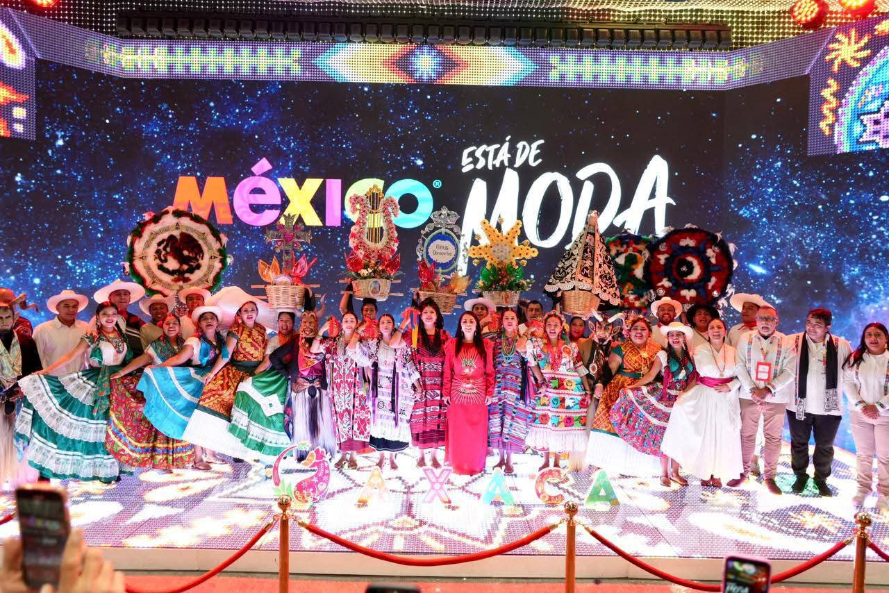 En este marco, se presentó ante el público internacional la imagen oficial de la Guelaguetza 2026 “Sinfonía de Colores”, obra del artista Noel Gómez Lorenzo, originario de San Juan Colorado.