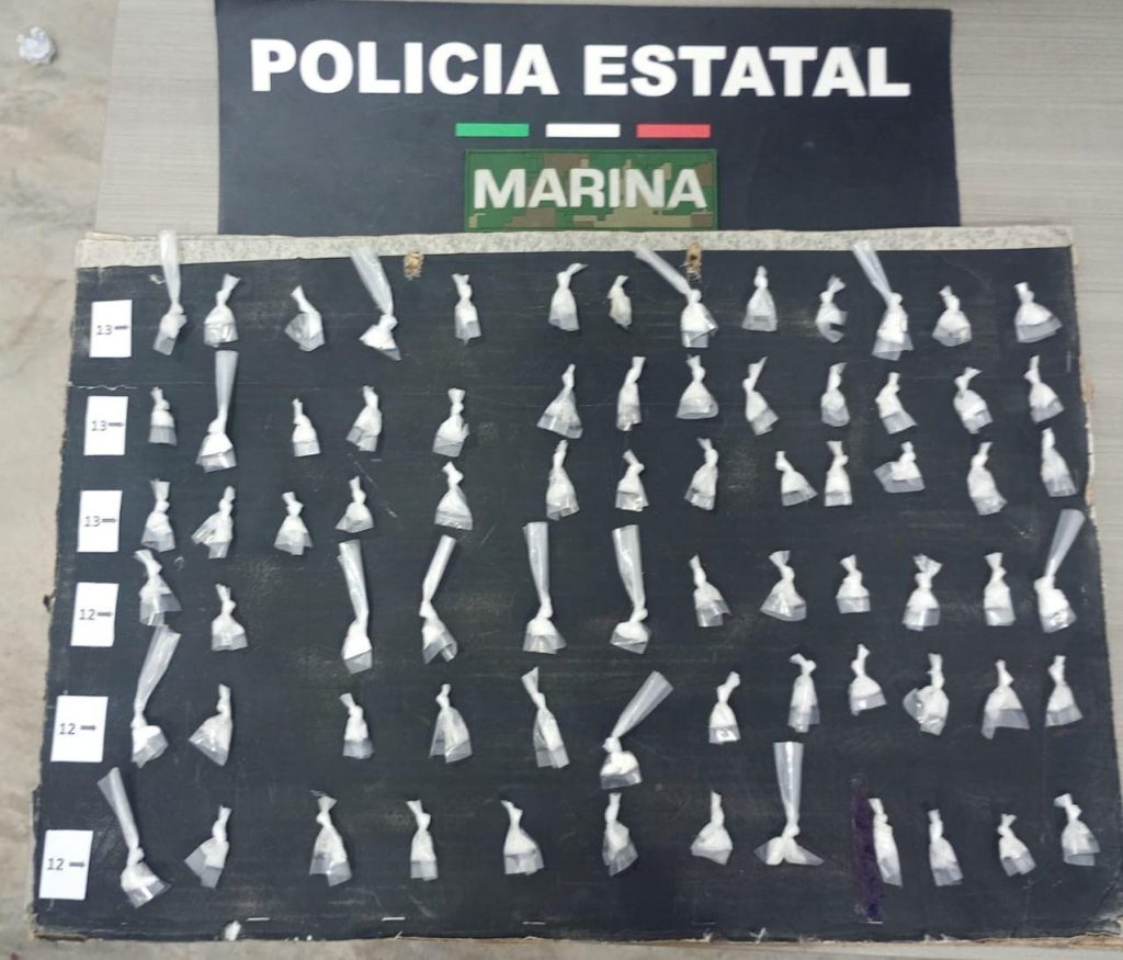 • Localizaron 75 bolsitas transparentes con una sustancia granulada con características similares a la droga conocida como cristal