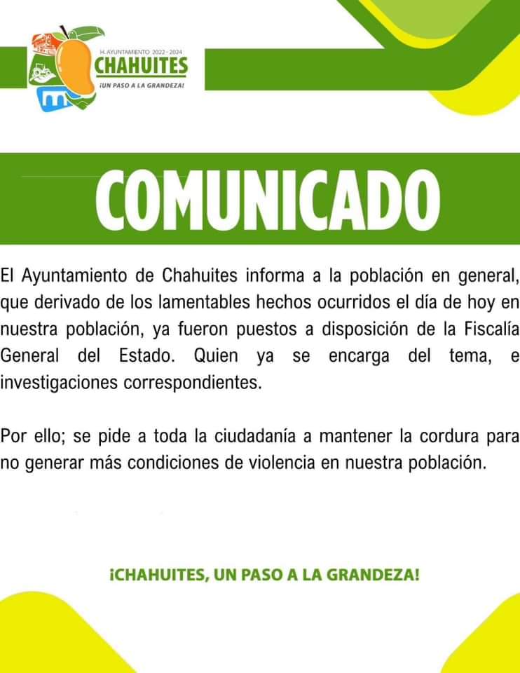 Pobladores de la comunidad detuvieron a un adolescente de 16 años de edad, a quien señalaron como responsable del homicidio. Dicho menor de edad quedó bajo resguardo de la Policía Municipal del lugar, que posteriormente lo puso a disposición de las áreas correspondientes de la Fiscalía de Oaxaca.