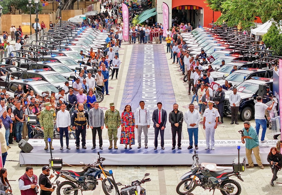 Lo anterior, al participar junto al Gobernador Salomón Jara Cruz en la entrega de patrullas y motopatrullas a policías de diversos municipios que requirió una inversión de 25 millones 472 mil 867 pesos, para fortalecer el Sistema de Seguridad Pública y mejorar la capacidad de respuesta, movilidad y presencia policial en Oaxaca.