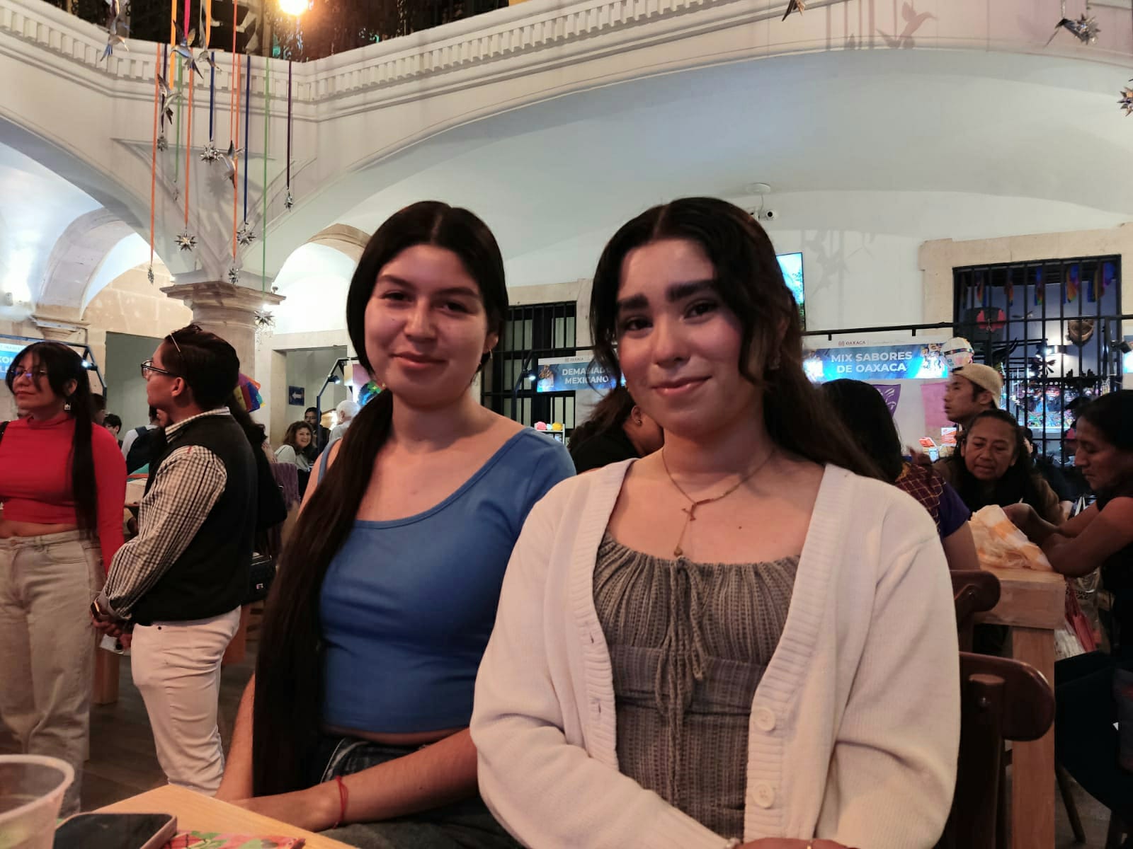 Ambas disfrutan el lugar, ocupan una mesa al centro del patio interior y observan los stands de productos oaxaqueños que se encuentran alrededor, llenos de artesanías, artículos hechos a mano y productos artesanales, realizados en talleres de las ocho regiones del estado.