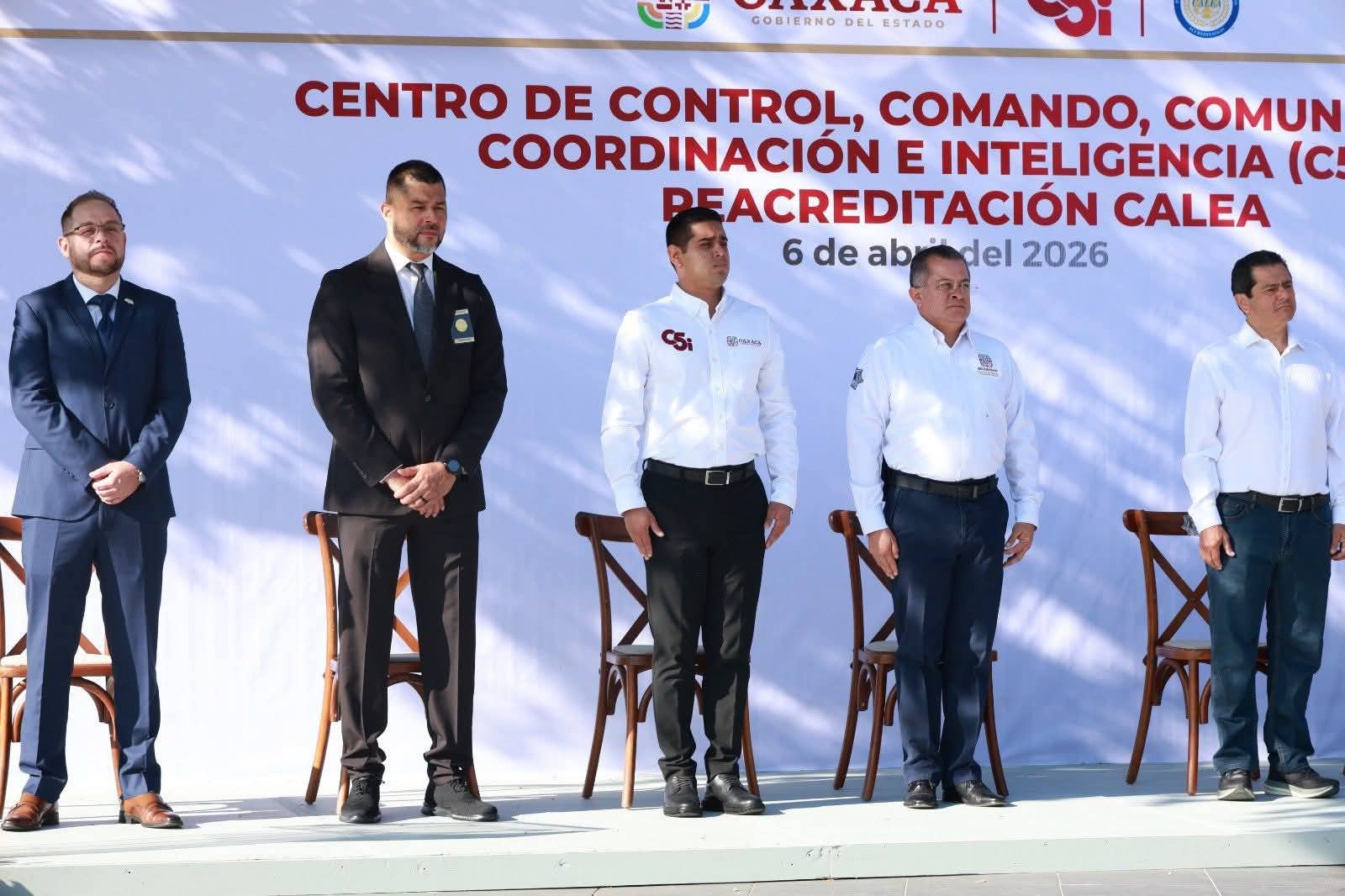 El Director General, Lic. Jaime González Estudillo, acompañado de autoridades de seguridad pública y personal del C5i Oaxaca, dio la bienvenida al Mtro. Oscar Gilberto Rojas Brizuela y al Chief Jacob Ruíz, integrantes del Servicio de Cumplimiento de CALEA.
