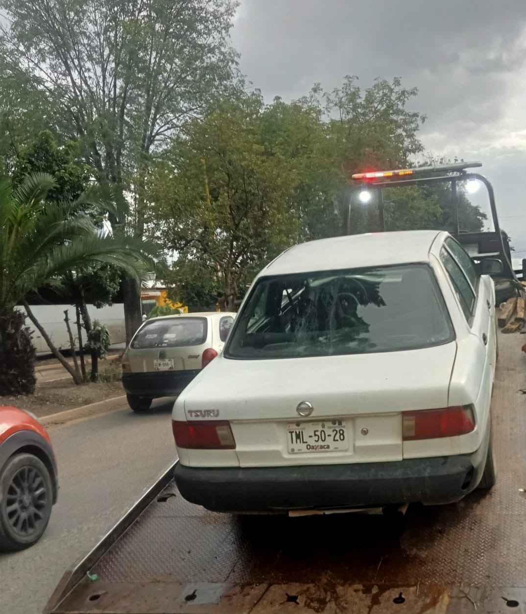 Los datos del vehículo marca Nissan, tipo Tsuru, color blanco, con placas de circulación TML-5028 del estado de Oaxaca, correspondían con el reporte levantado por el ciudadano afecto ante el C4 de la Secretaría de Seguridad y Protección Ciudadana (SSPC).