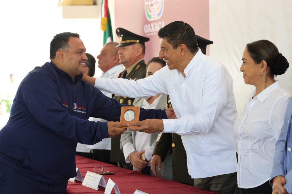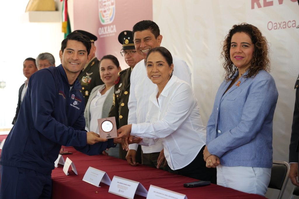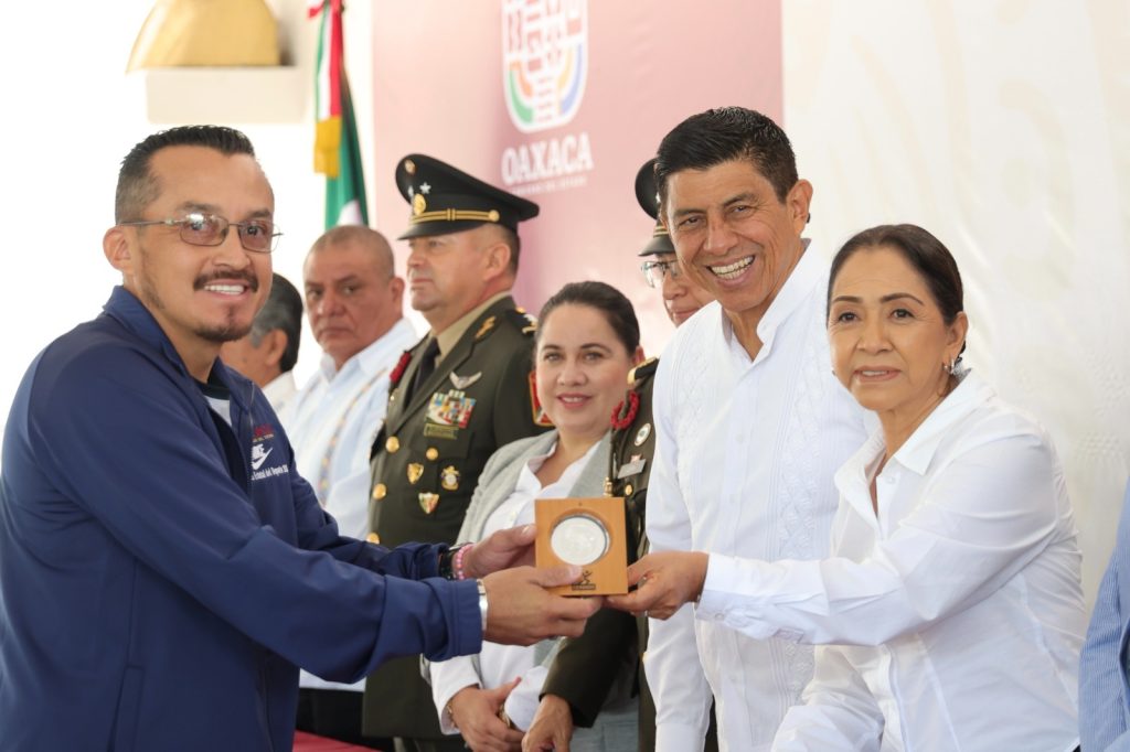En el marco de este acto conmemorativo, el Gobernante oaxaqueño entregó el Premio Estatal del Deporte 2024 a la paraciclista Gilda Andrea Hernández Ramírez y al taekwondoín William de Jesús Arroyo Reyes en la categoría Mejor Deportista.