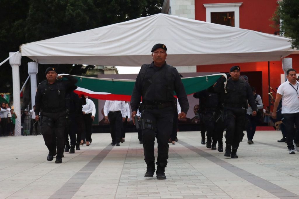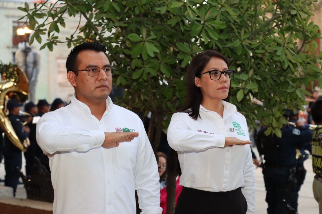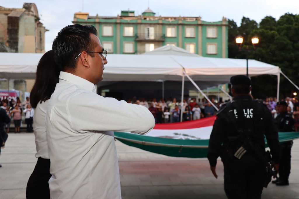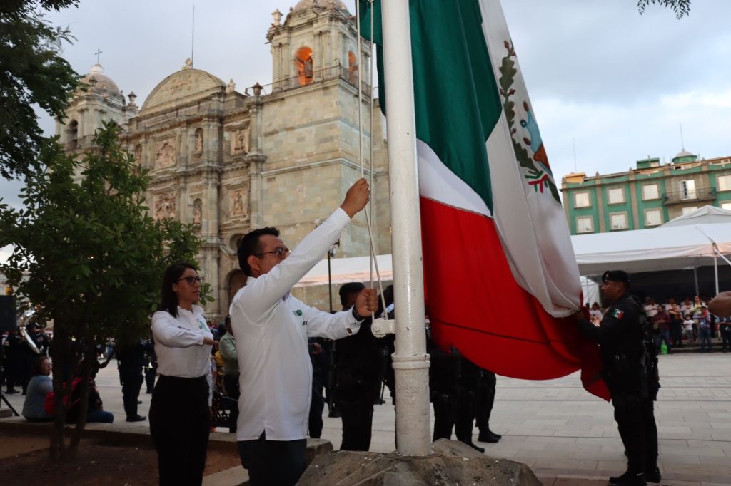 Oaxaca de Juárez, Oax. 4 de septiembre de 2024.- En la Alameda de León y en el marco del Programa Septiembre, Mes de la Patria, Mes de la Cuarta Transformación y del 214 aniversario de la Independencia de México, el Monte de Piedad del Estado de Oaxaca llevó a cabo el acto solemne del Arriamiento del Lábaro Patrio, con la participación de la Banda de Música de la Policía Estatal.