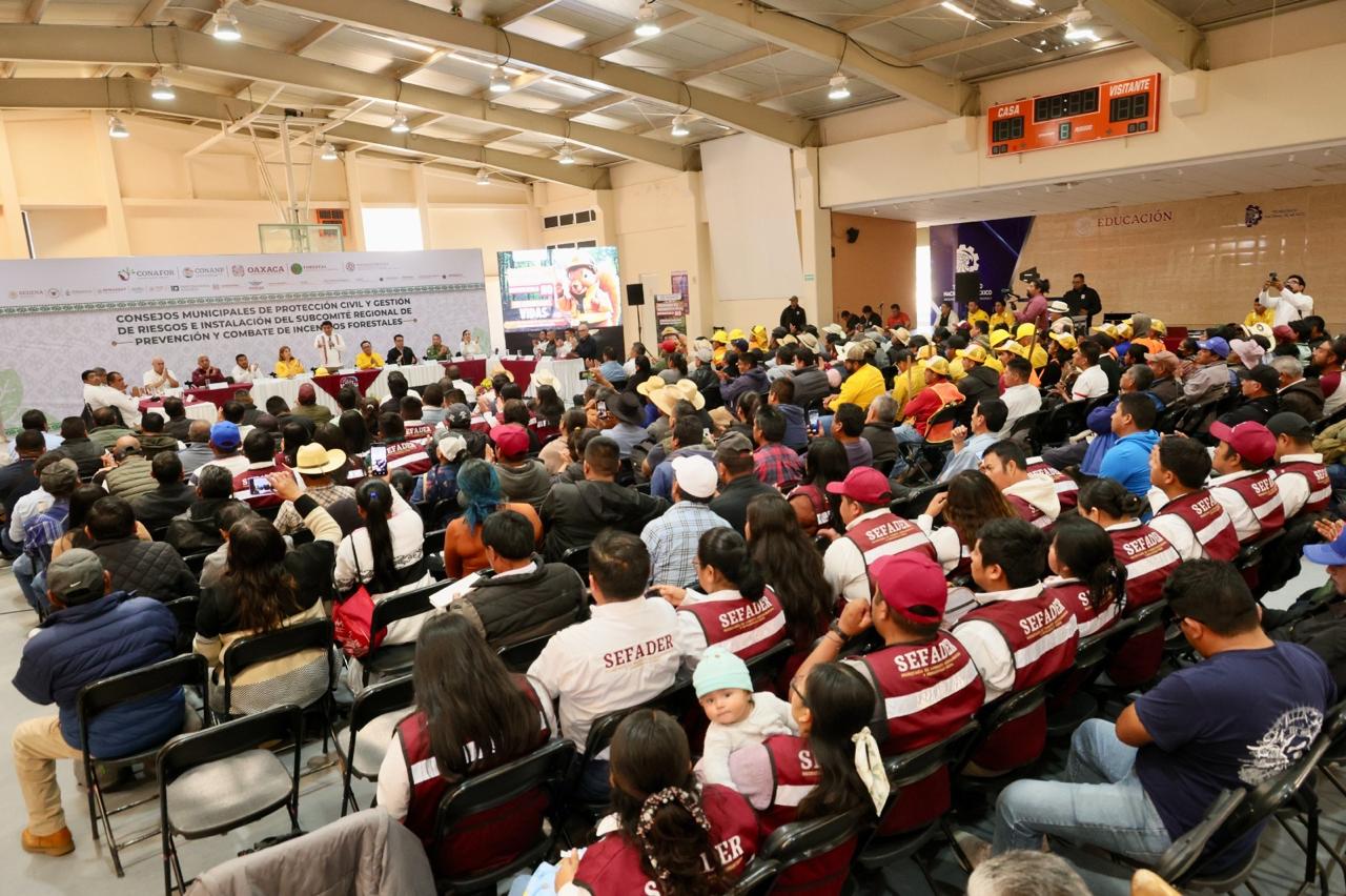 Heroica Ciudad de Tlaxiaco, Oax. 16 de febrero de 2025.- El Gobernador de Oaxaca Salomón Jara Cruz encabezó la Sesión de Instalación del Subcomité de Prevención y Combate de Incendios Forestales, así como la toma de protesta a los Consejos Municipales de Protección Civil y Gestión de Riesgos de la región Mixteca, con la finalidad de fortalecer la atención de los siniestros en la zona.