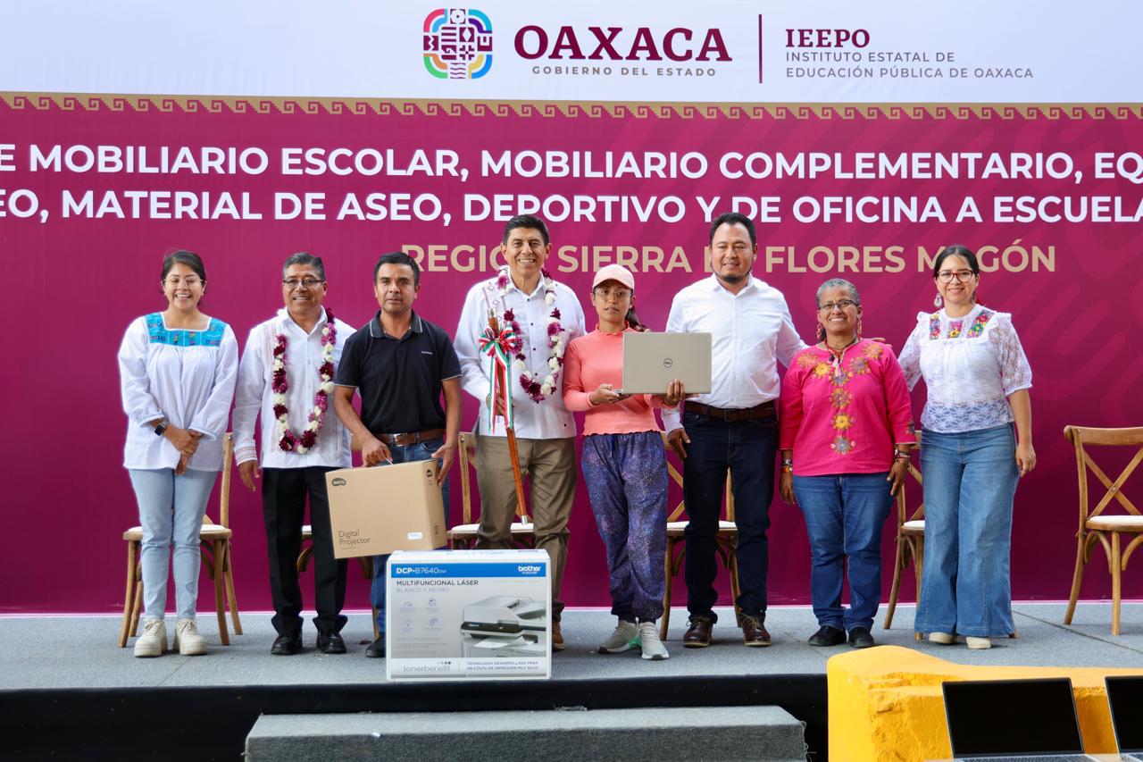 En este significativo evento realizado en San Juan Bautista Cuicatlán, anunció que a través del Instituto Estatal de Educación Pública de Oaxaca (IEEPO) se dará de manera directa este equipamiento, que beneficia a 4 mil 89 estudiantes.