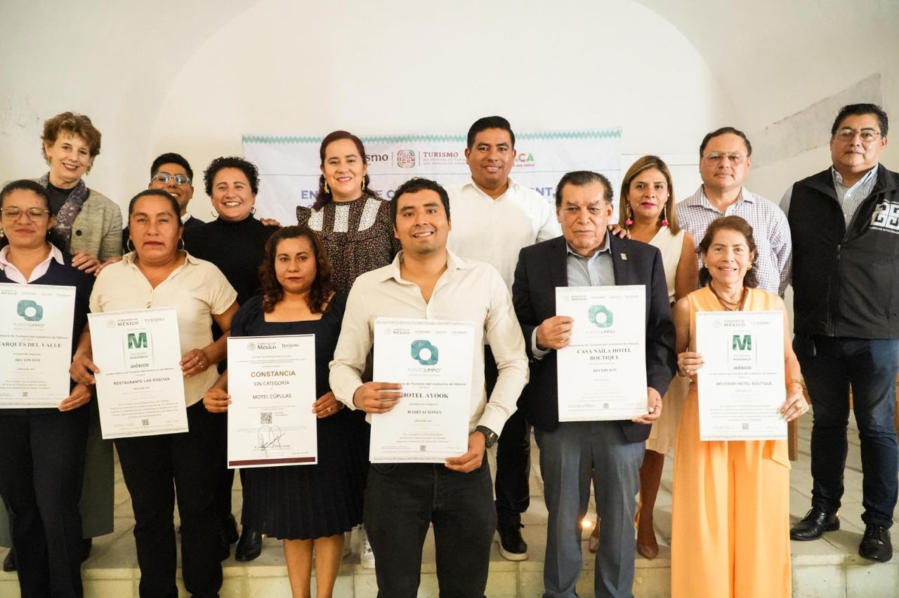 También, se entregaron: dos distintivos Moderniza (M), dos Cédulas del Sistema de Clasificación Hotelera (SCH) y 18 distintivos Punto Limpio; los cuales reconocen los altos estándares de calidad de los establecimientos y garantizan que los servicios ofrecidos cumplan con niveles de excelencia y expectativas de las y los turistas.