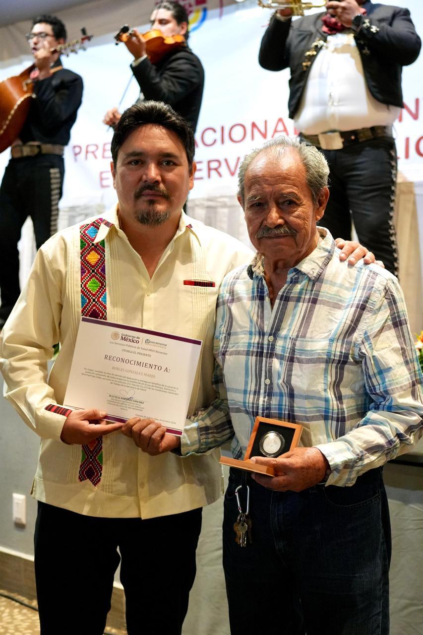 En un acto cargado de simbolismo y emoción, fue reconocido Mario Robles González, de 80 años de edad, adscrito al área de mantenimiento del Hospital General Doctor Aurelio Valdivieso IMSS-Bienestar, quien recibió la medalla “Doctor Miguel Enrique Bustamante” por 55 años de servicio ininterrumpido.