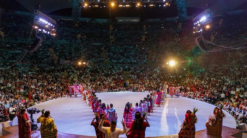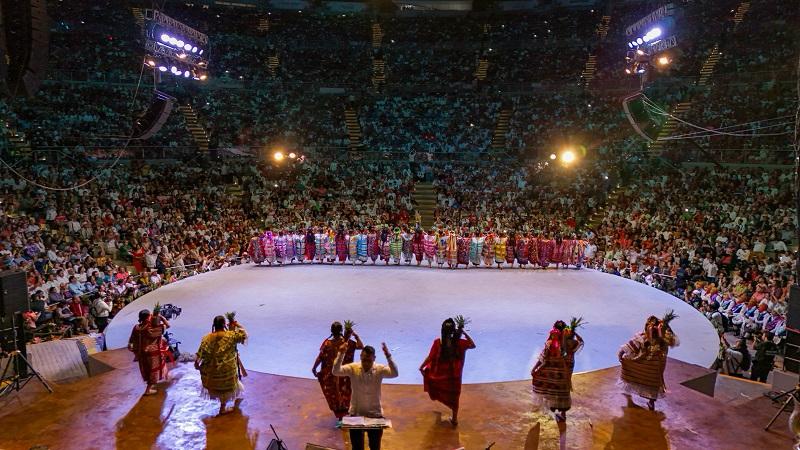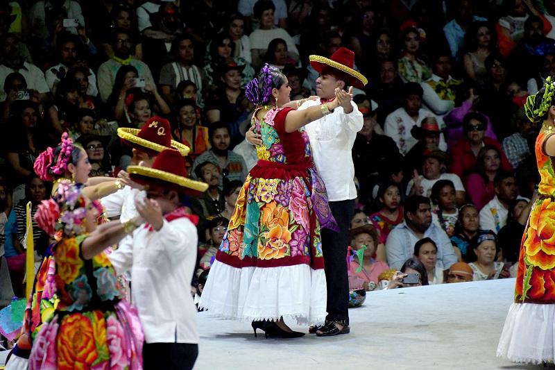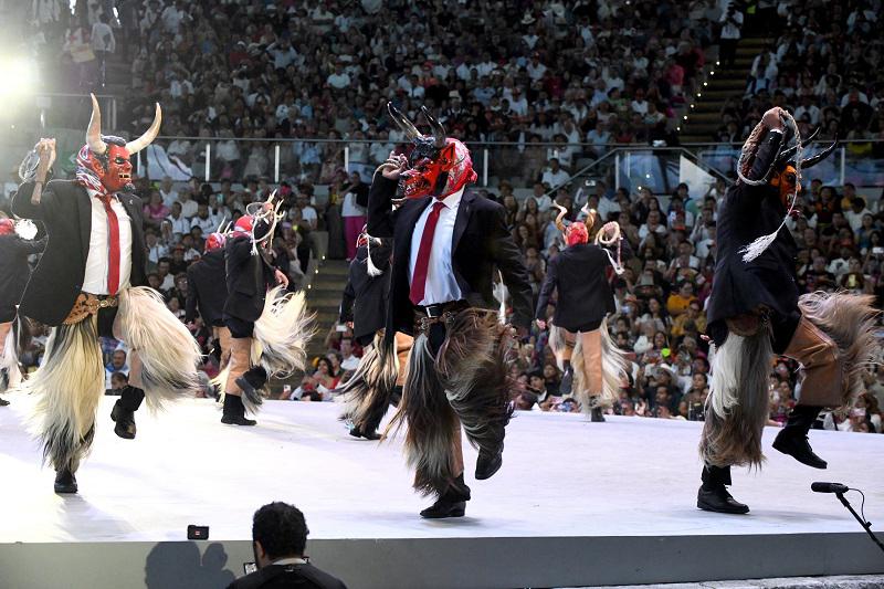 • En la edición vespertina y última del año, las delegaciones de las ocho regiones de la entidad hicieron vibrar los corazones de las y los más de 11 mil asistentes, quienes ovacionaron la riqueza pluricultural de los 16 pueblos originarios y afromexicano de Oaxaca