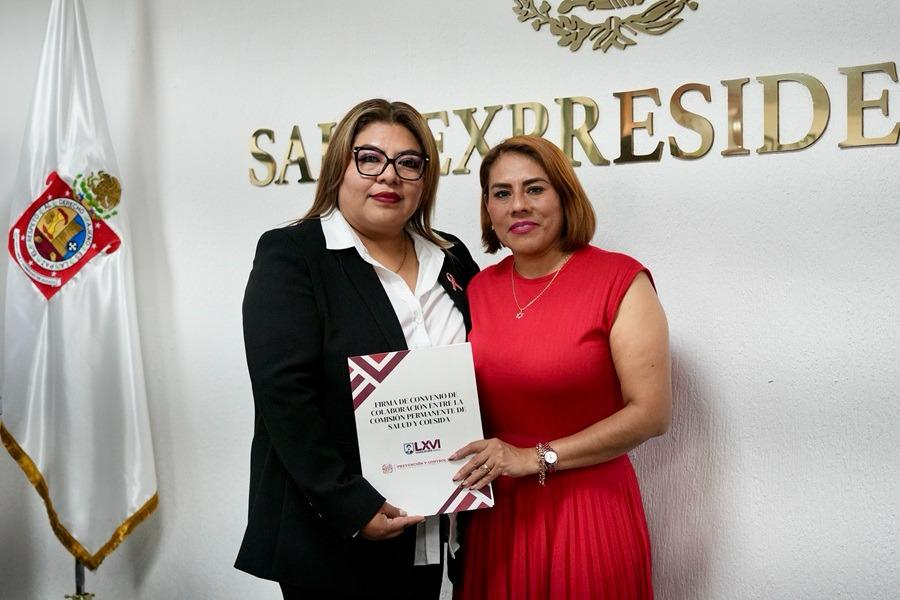 La firma del convenio fue encabezada por la Directora General del Coesida y la presidenta de la Comisión Permanente de Salud del Congreso del Estado, Tania López López. Asimismo, asistió el presidente de la Junta de Coordinación Política de la LXVI Legislatura, Benjamín Viveros Montalvo.