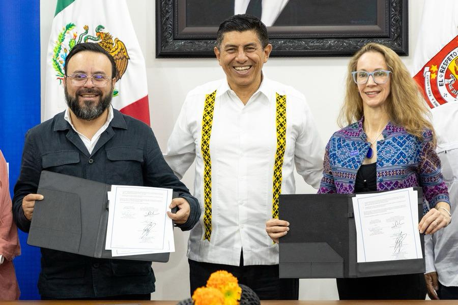 La firma del acuerdo estuvo a cargo del Gobernador Salomón Jara Cruz y de la jefa de Misión de la OIM México Dana Graber Ladek, además de integrantes del Gabinete de Gobernabilidad y Derechos Humanos de Oaxaca, con el propósito de coordinar acciones que favorezcan la salvaguarda de las garantías individuales de quienes transitan por la entidad en estado migratorio.
