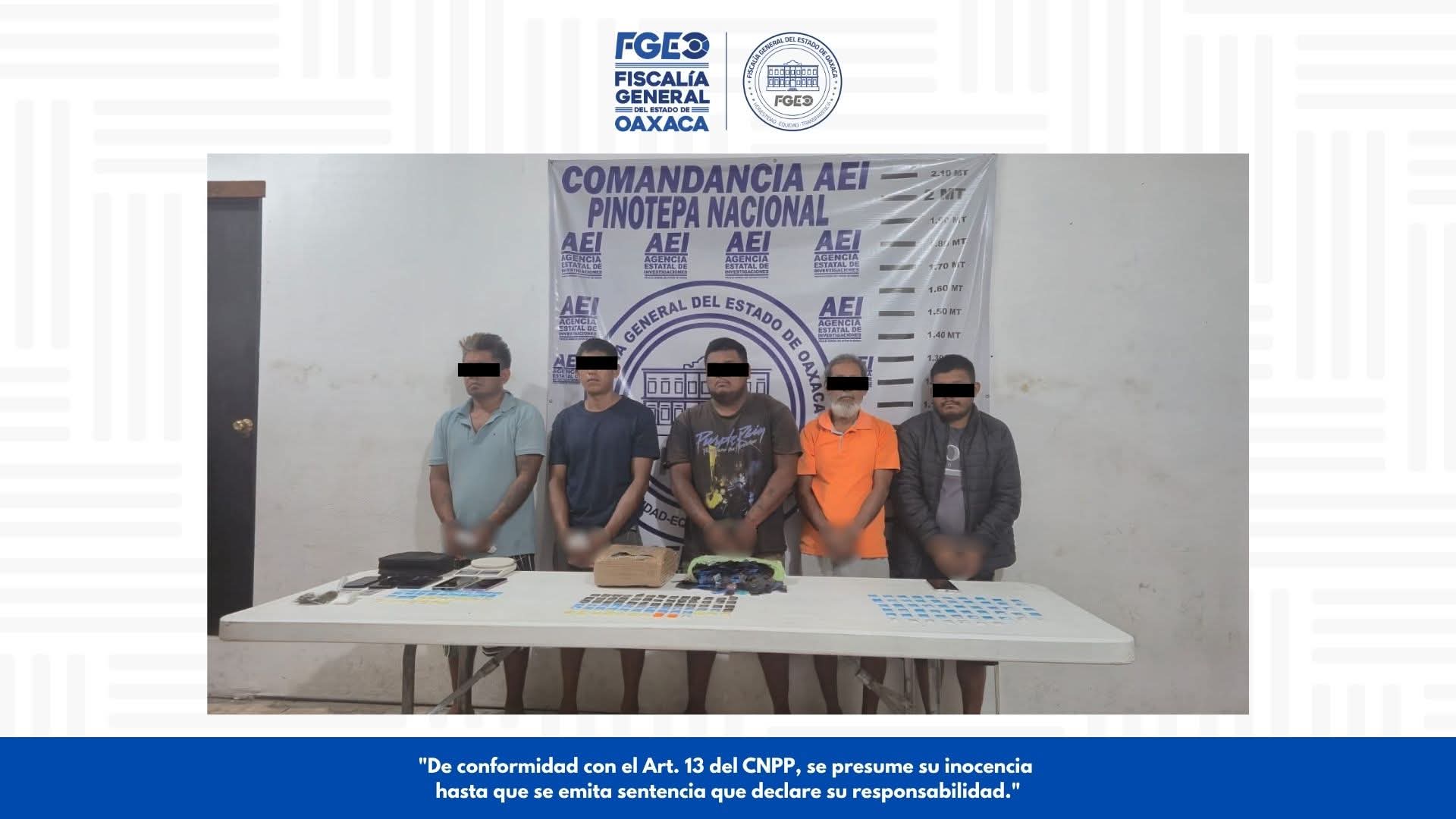 Oaxaca de Juárez, Oax., 28 de abril de 2026.- Como resultado de trabajos de investigación ministerial, la Fiscalía General del Estado de Oaxaca (FGEO) ejecutó tres órdenes de cateo en la región de la Costa, logrando el aseguramiento de diversas dosis de drogas y la detención de cinco personas, por el delito contra la salud en su hipótesis de posesión de metanfetamina y marihuana con fines de comercio.