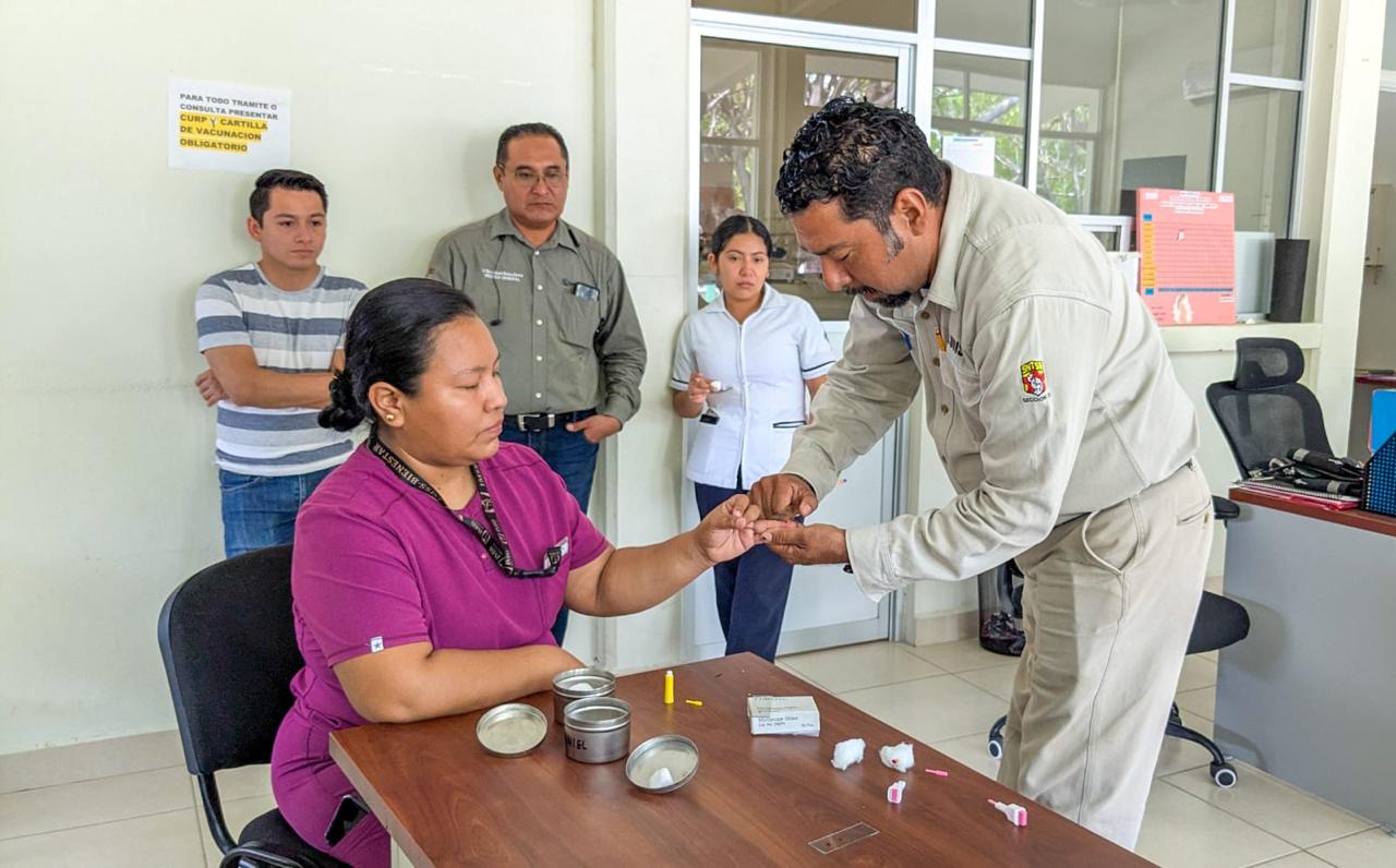 En este tenor, con un enfoque preventivo y comunitario, se impartió capacitación al personal de la unidad médica IMSS-Bienestar de Chahuites en temas fundamentales como definiciones operacionales, lineamientos de muestreo, toma de gota gruesa y aplicación de Pruebas de Diagnóstico Rápido (PDR).