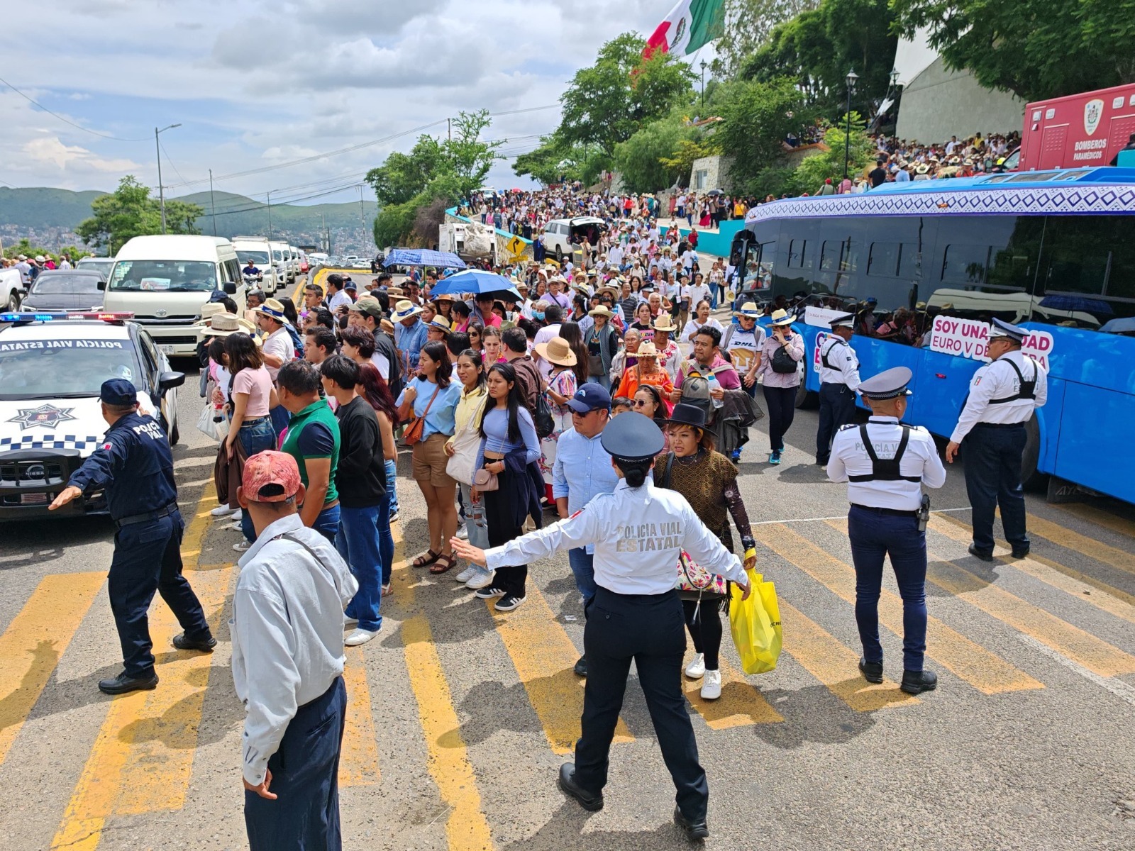 Ante la afluencia de visitantes se trazaron rutas alternas y croquis para el correcto desarrollo de los convites, actividades deportivas, gastronómicas y desfiles de las delegaciones que precedieron la máxima fiesta de Oaxaca. La dependencia detalló que se intensificó la seguridad vial en los atractivos turísticos de la capital y municipios conurbados como fue el Centro Histórico, la Plaza de la Danza y el Centro Cultural y de Convenciones de Oaxaca, donde se realizó la Feria del Mezcal 2024.