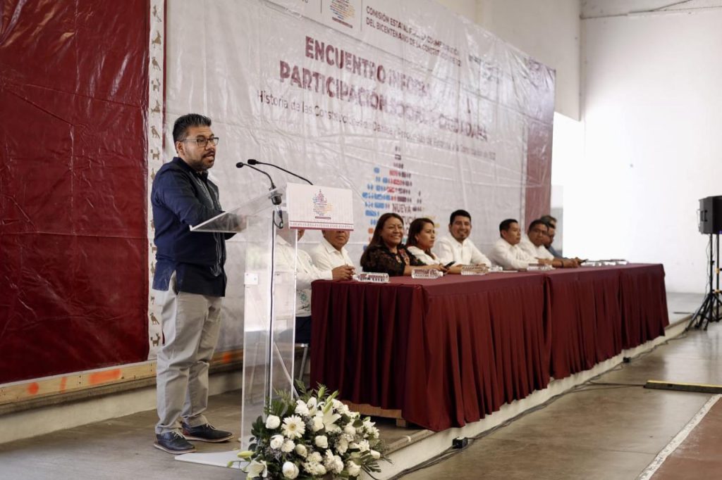 En el marco del quinto Encuentro Regional Informativo y de Participación Social y Ciudadana, Historia de las Constituciones de Oaxaca y Propuestas de Reforma a la Constitución de 1922, Vásquez Sagrero destacó la aportación histórica de la Sierra de Juárez a través de la visión de Benito Juárez, Marcos Pérez y Miguel Méndez, para un estado más justo.