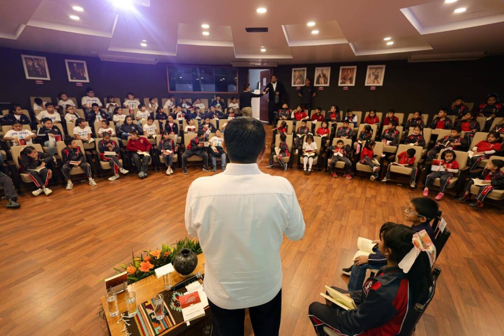 Oaxaca de Juárez, Oax. 7 de enero de 2025.- Con la participación de 91 estudiantes del Instituto Pedagógico Oaxaca y del Internado de Educación Primaria número 13 General Ignacio Mejía, el Gobernador Salomón Jara Cruz encabezó como cada inicio de mes, el programa de Fomento a la Lectura, Un pueblo leyendo para transformar su historia.