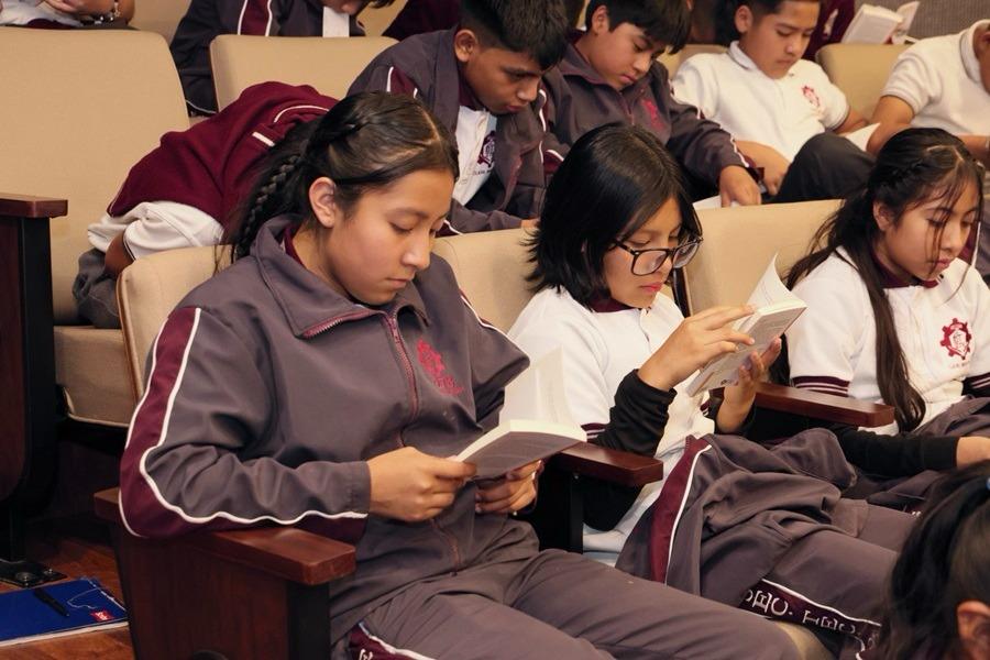 El Instituto para la Creación Literaria y Fomento a la Lectura, organiza el encuentro cada inicio de mes y esta edición se focalizó en el marco del Día Internacional de la Mujer, que se conmemora cada 8 de marzo, de tal manera que las y los estudiantes conocieron el libro “Nuestras Mujeres” de la autora peruana Jennifer Thorndike.