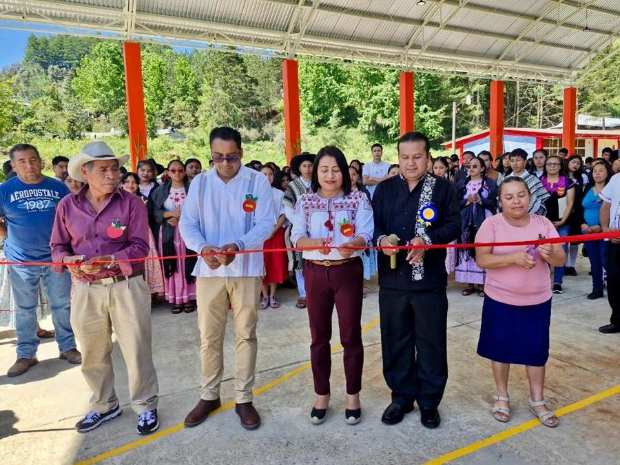 Totontepec Villa de Morelos, Oax. 14 de marzo de 2025.- La directora general del Colegio de Bachilleres del Estado de Oaxaca (Cobao), Angélica García Pérez encabezó la inauguración del techado de la explanada del plantel 41 Totontepec, obra que beneficia a la comunidad docente y estudiantil con espacios seguros y dignos.
