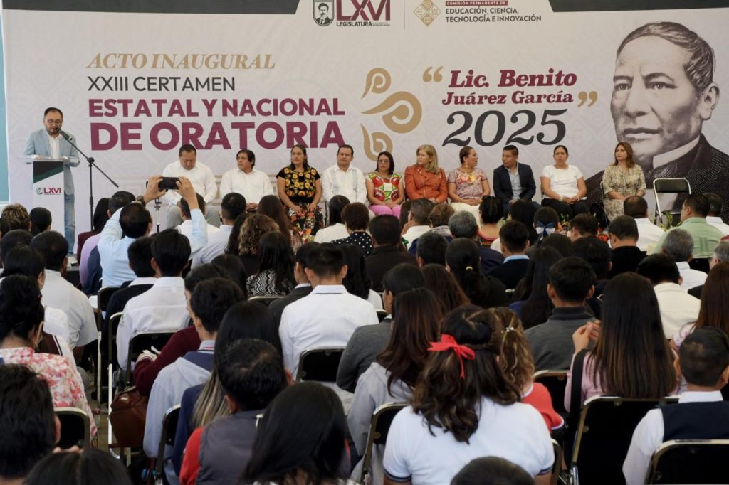 Resaltó que este certamen no solo es una competencia, sino un acto de memoria, tributo al legado de don Benito Juárez García, “oaxaqueño ejemplar, hombre de leyes, defensor incansable de nuestra República, de la soberanía nacional y de un Estado laico”, enfatizó, y agregó, que recordarlo es hacer presente su visión de justicia, igualdad y progreso para los pueblos de México.