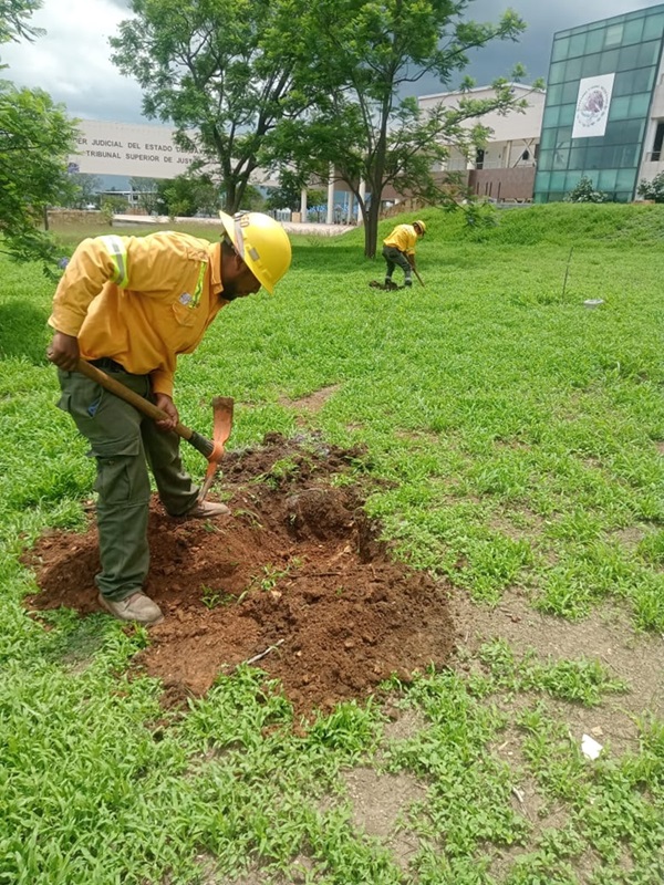 La Comisión Estatal Forestal (Coesfo), en colaboración con la Coordinación de Servicios y Mantenimiento de la Secretaría de Administración, realiza estas actividades que forman parte de una estrategia integral que impulsa la recuperación de áreas verdes y el fortalecimiento de una cultura ambiental en espacios institucionales y comunitarios.