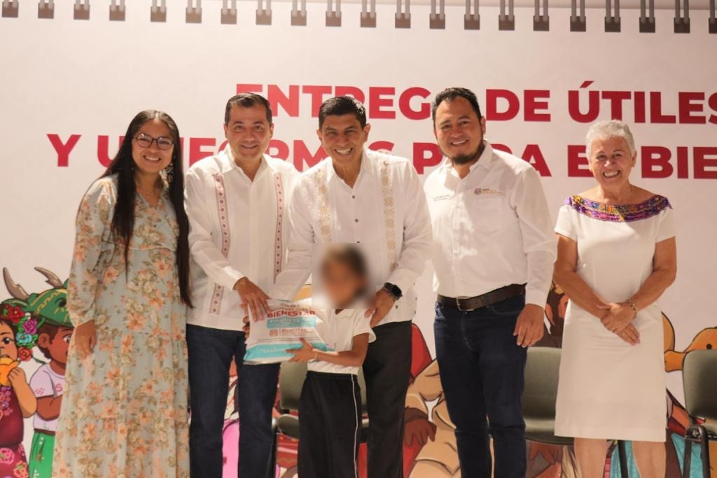 Con esta acción dio inicio el programa impulsado por la Secretaría de Bienestar, Tequio e Inclusión (Sebienti) que beneficiará a 975 mil estudiantes de más de 11 mil escuelas públicas de los niveles preescolar, primaria y secundaria, priorizando a las comunidades con mayor rezago social.
