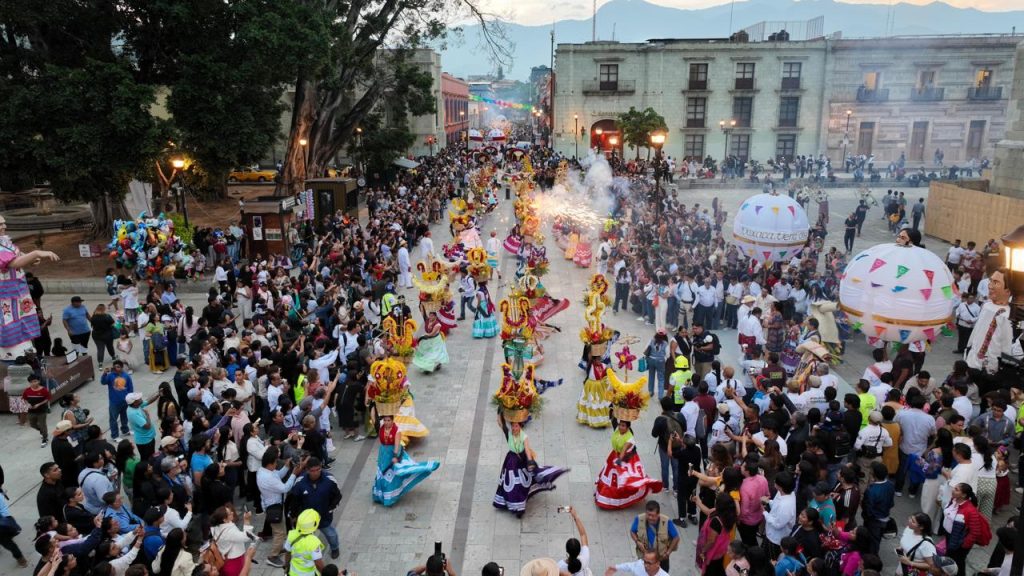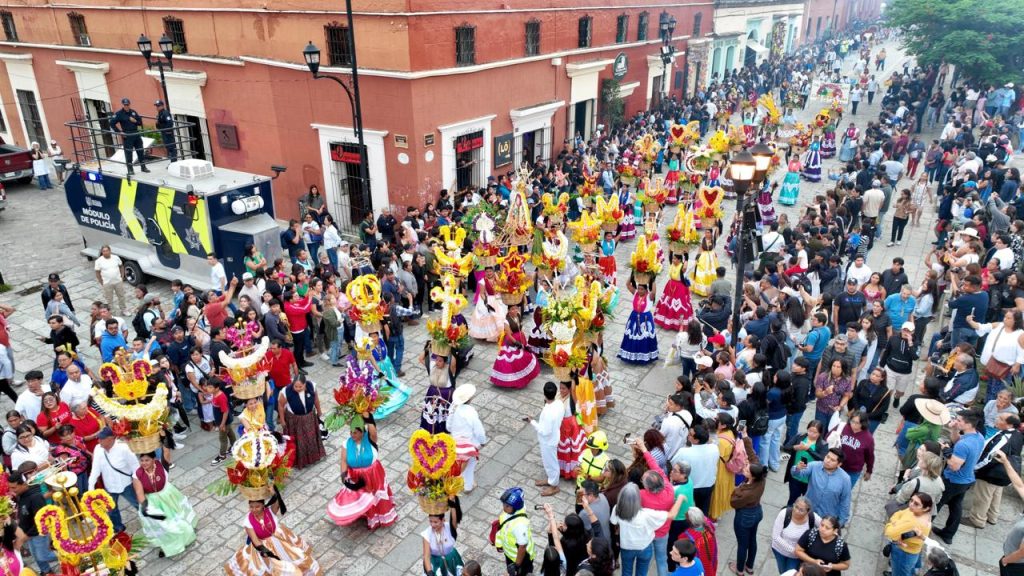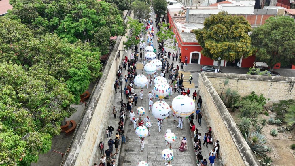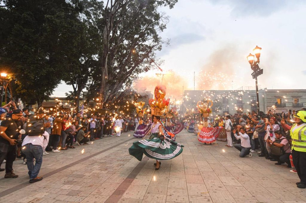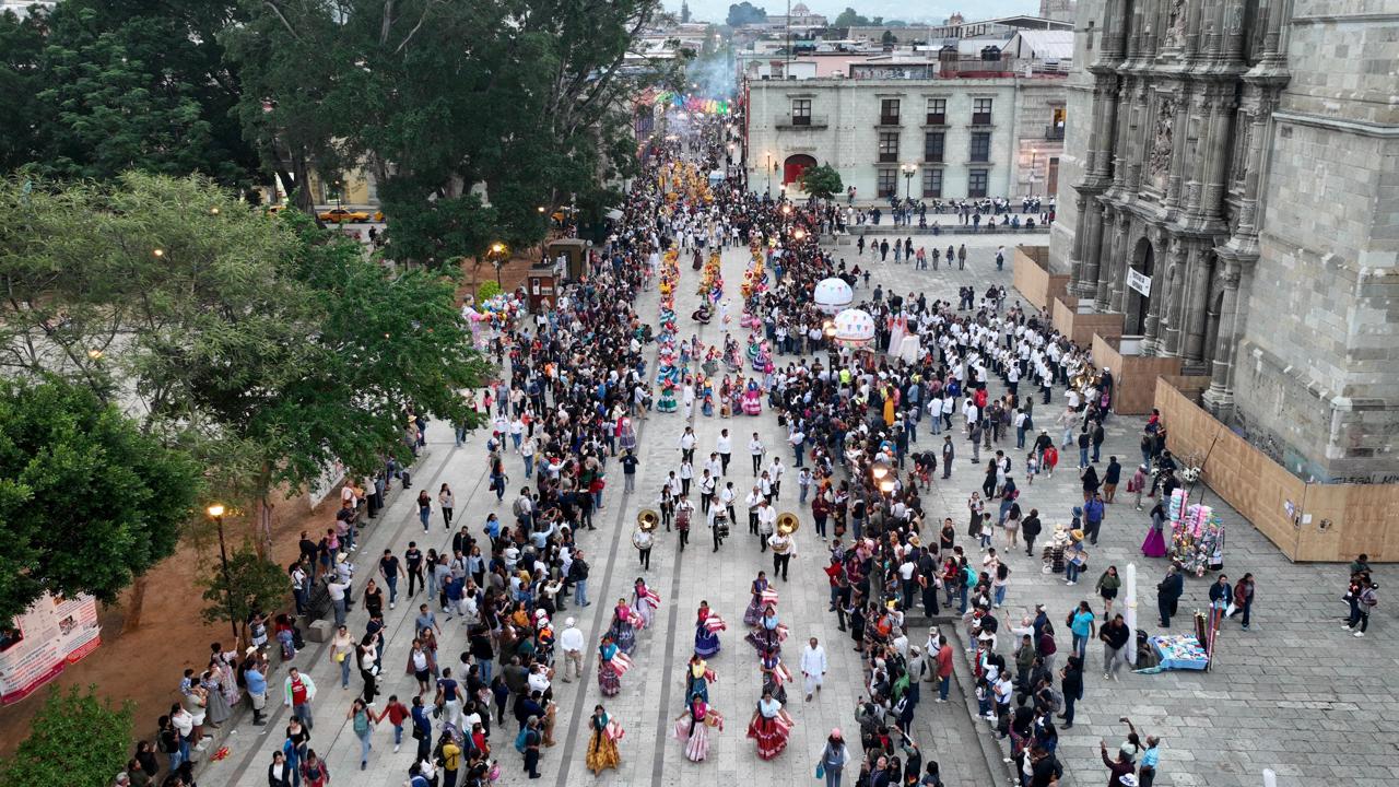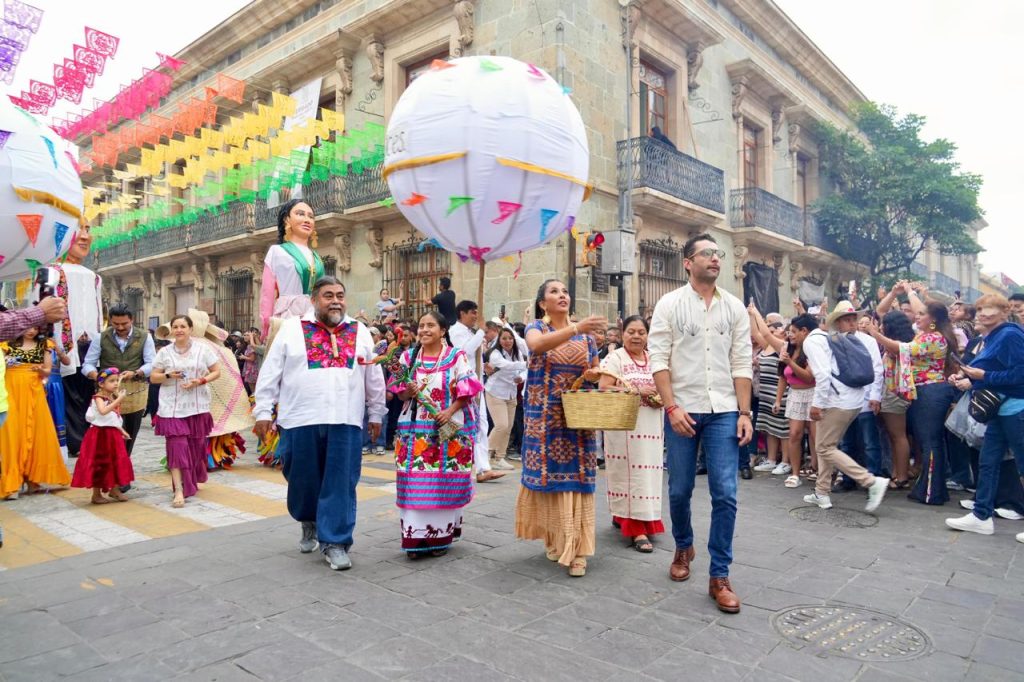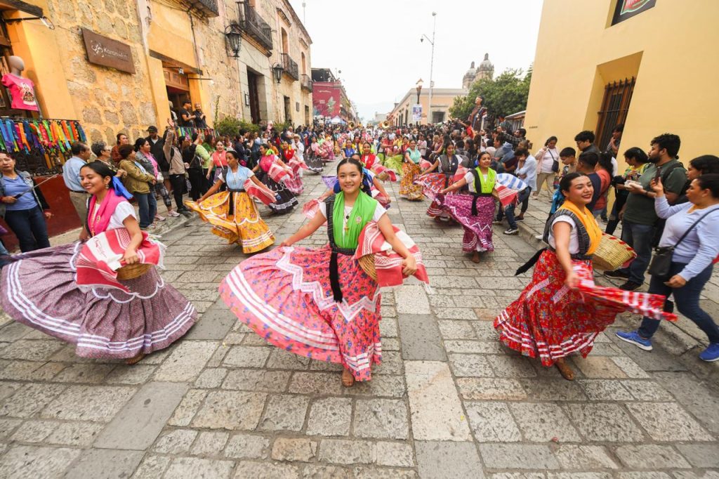 Les siguieron, con la algarabía que los caracteriza, las delegaciones de Cuilápam de Guerrero, las Canasteras de Puerto Ángel, Santa Cruz Xoxocotlán y el Pueblo Mágico de San Pablo Villa de Mitla, que avanzaron por el andador turístico, la avenida José María Morelos y la calle García Vigil, para concluir en la explanada de la Alameda de León.