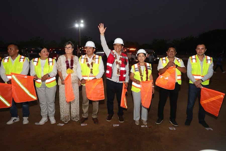 San Pedro Mixtepec, Oax. 27 de marzo de 2025. Como parte de su compromiso con la masificación del deporte, el Gobernador Salomón Jara Cruz dio el banderazo de inicio a los trabajos de restauración de la Unidad Deportiva Villa Primavera Puerto Escondido.
