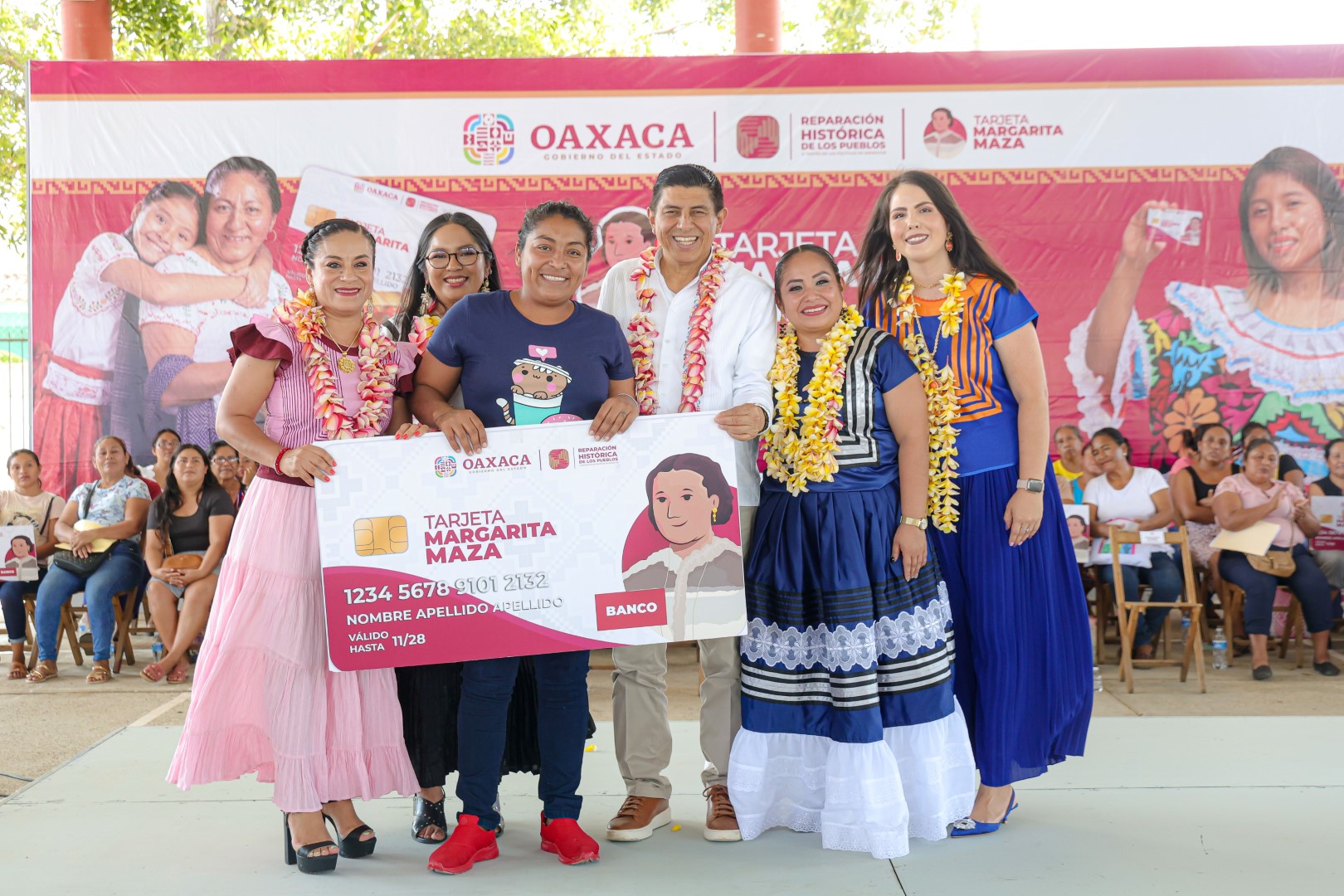• El Mandatario estatal entregó 902 Tarjetas Margarita Maza para jefas de familia en la región del Istmo por un monto superior a 10 millones de pesos